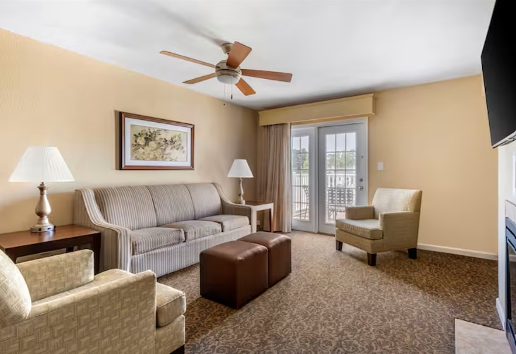Step back in time on 256 acres of wooded hills in Williamsburg, Virginia. Centered around a historic 1735 manor house, this Colonial-style resort captures the charm of early America. Explore Williamsburg’s rich history with nearby museums, monuments, and battlefields. Enjoy modern amenities including indoor and outdoor pools, a tennis court, and a playground—perfect for a family-friendly and educational getaway.