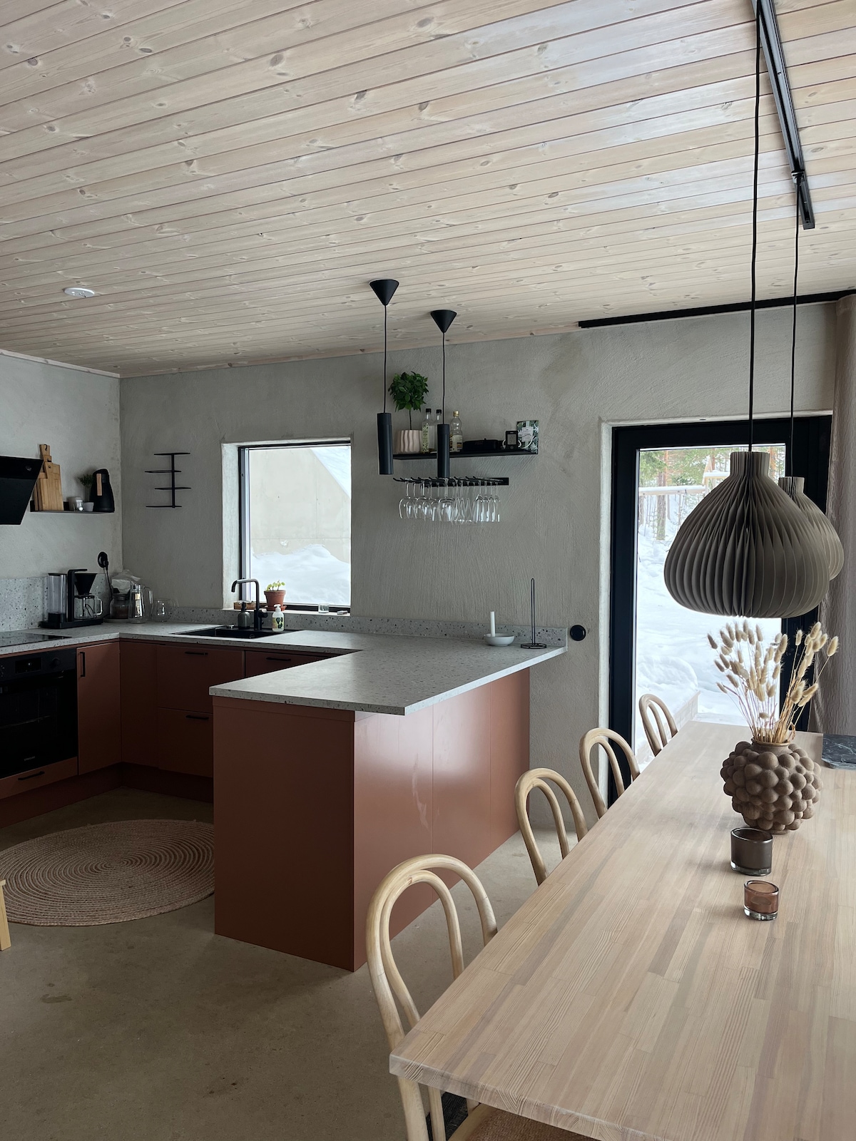 Bersantai! Biarkan anak-anak anda mandi di tasik semasa anda berjemur di teres. Anda boleh memanggang sesuatu yang lazat di teres, pergi memancing di tasik dengan bot atau mengambil kereta salji selepas menyelesaikan mesyuarat video yang berjaya dengan pelanggan anda. Hanya imaginasi anda menetapkan had untuk aktiviti luar anda. Kerja dalam talian atau percutian anda, matahari terbenam yang tidak berkesudahan atau malam yang tenang di hadapan dapur kayu akan menjadikan penginapan anda tidak dapat dilupakan.