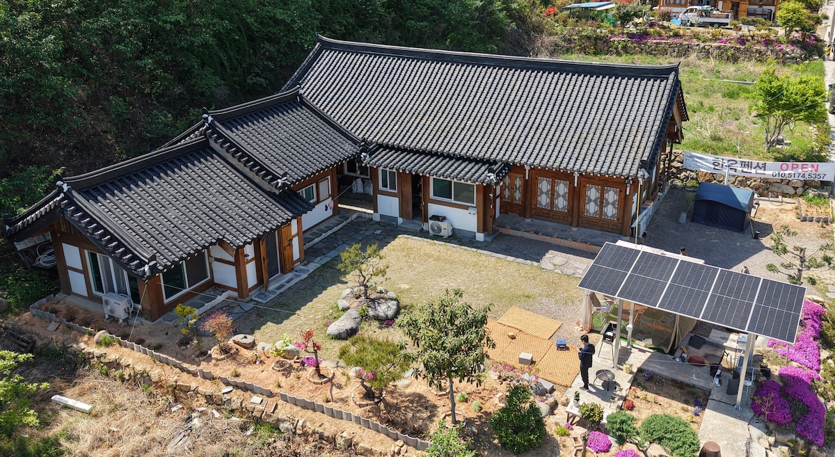 Nikmati percutian terpencil bersama seluruh keluarga di Obongri Stone Wall House, yang terletak di kampung dinding batu yang tenang dan selesa. Di taman, pokok-pokok dan bunga-bunga berwarna-warni Namdo memberikan penyembuhan untuk anda, dan lubang api aurora, yang anda nikmati selepas barbeku, memberikan keselesaan dalam fikiran anda yang letih. Hanok ini terdiri daripada bilik tidur utama, Daecheongmaru, bilik silang, dan tanjung di dapur, dan terdapat dua tandas dan bilik mandi bebas. Terdapat katil queen di bilik tidur utama dan sehingga 4 tikar busa memori di seberang bilik, supaya anda boleh tidur dengan selesa. Terdapat tingkap di dapur, jadi anda boleh sembuh sambil melihat taman semasa makan dan mencuci pinggan mangkuk. Terdapat kawasan barbeku peribadi, dan terdapat ruang berasingan di mana anda boleh membuat kenangan indah semasa bermain dengan api.