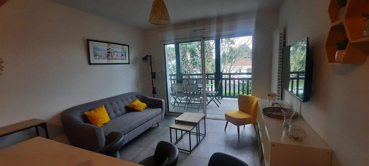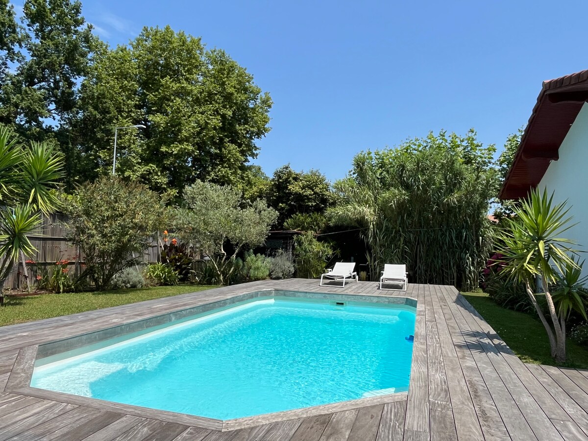 10 minit dari pusat Bayonne dan Biarritz , Jean dan Isabelle dengan sukacita akan mengalu-alukan anda di rumah lama yang telah mereka baiki. Terletak di antara Maharin Park dan Chiberta Pine Forest, pantai Angloyes akan berjarak 5 minit memandu atau 20/25 minit berjalan kaki dan boleh diakses dengan basikal melalui hutan. Unit dupleks dengan taman persendirian seluas 30 meter persegi ini merupakan bangunan luar rumah tetamu yang bersebelahan. Parkir tepi jalan yang mudah.