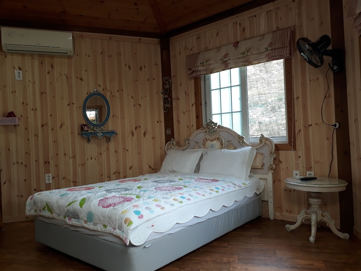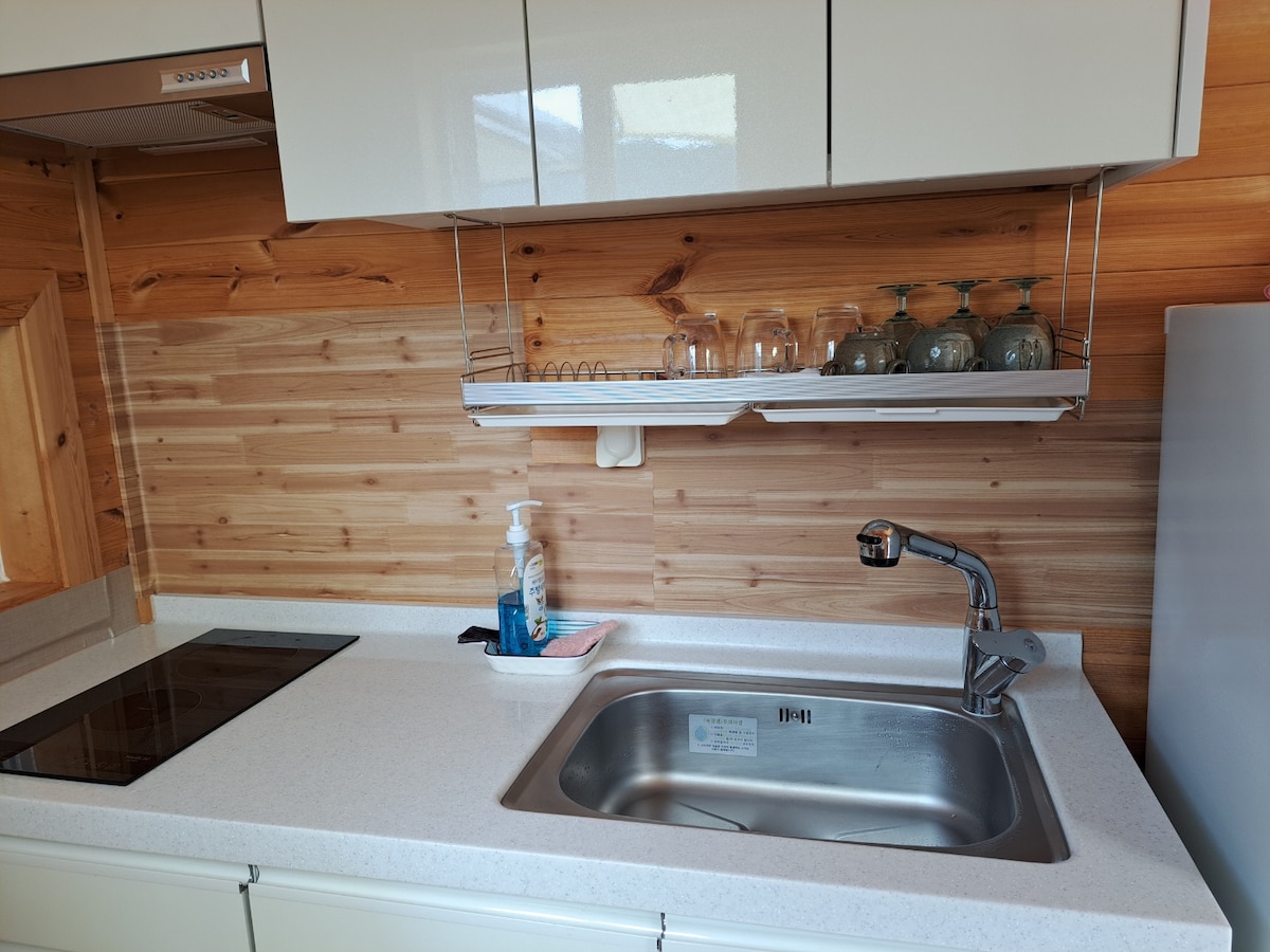 Platform untuk perjalanan ke Jindo. Ia adalah ruang unik dengan rumah coklat dan alam semula jadi. # Penginapan Banyak ruang untuk sehingga 4 orang dewasa [peralatan tempat tidur disediakan] ★ Standard 2 orang/maksimum 4 orang, 20,000 seorang jika lebih daripada 2 orang Serba lengkap dengan sistem penyaman udara dan pemanasan Dek persendirian dengan barbeku + meja luar untuk 4 orang [peralatan makan disediakan] Anjing dibenarkan [20,000 KRW semalam/1 haiwan peliharaan] # Ruang umum Dapur dan ruang makan (peti sejuk, induksi, ketuhar gelombang mikro, dapur gas mudah alih, meja makan, TV, dehidrator) Bilik Mandi Lelaki Sahaja 1 Perempuan Sahaja 1 Tandas Lelaki Hanya 3 Perempuan Hanya 3 Teres luar dan skrin besar (projektor sinaran) # Kemudahan umum Taman permainan anjing dengan buaian rakyat dan gazebo Kawasan bola keranjang separuh gelanggang # Item sewaan Pemanggang barbeku + arang [20,000/2 orang, 25,000/3 ~ 4 orang] Tong lubang api + kayu api 10kg [20,000]