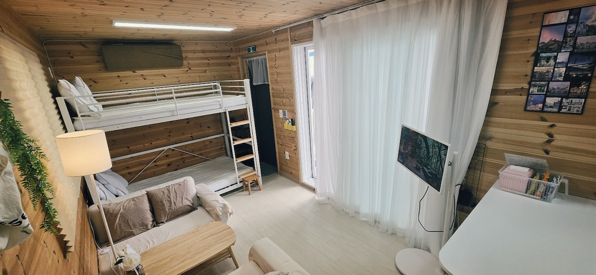Terdapat banyak kedai serbaneka dan restoran berhampiran, jadi ia mudah digunakan. Ia berada dalam jarak 10 minit dengan kereta dari Gwangju Championsfield dan 25 minit dengan berjalan kaki, jadi ia mudah untuk intuisi permainan Kia Tigers. Ia juga dalam jarak 10 minit berjalan kaki dari Dewan Pameran Biennale Gwangju, jadi anda boleh mengakses dewan pameran dengan mudah. Ia adalah lokasi yang mudah untuk masuk ke lebuh raya, jadi mudah untuk bergerak. Nikmati masa rehat yang selesa dan gembira bersama kekasih atau keluarga anda di penginapan Unam Whale yang bersih dan selesa. Anda juga boleh menonton program OTT seperti Netflix, Disney + dan YouTube.