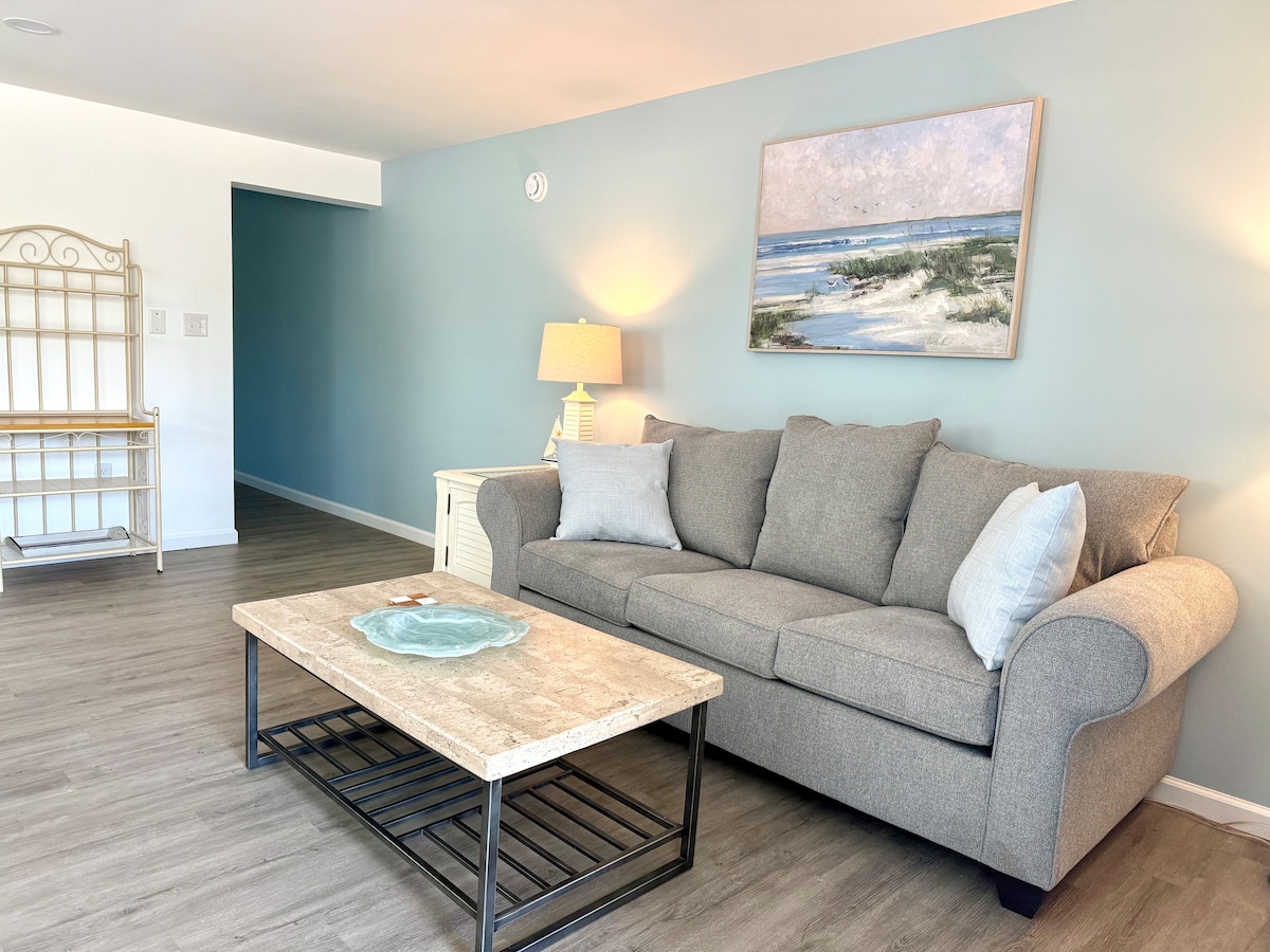 Pengubahsuaian baru yang cantik baru selesai tahun lepas!! 1 BR kondominium blok laut di 40th St, di seberang pusat konvensyen & setengah blok dari laut & bahagian pantai yang hebat dan tidak sesak. Daftar masuk sendiri mudah dengan pad kunci - tiada kunci! Hiasan dikemas kini dan mempunyai permukaan kaunter granit baru, bilik mandi berjubin yang cantik, peralatan & perabot baru, katil & sofa yang selesa, Wifi dan udara pusat. Rumah anda yang jauh daripada rumah sendiri!