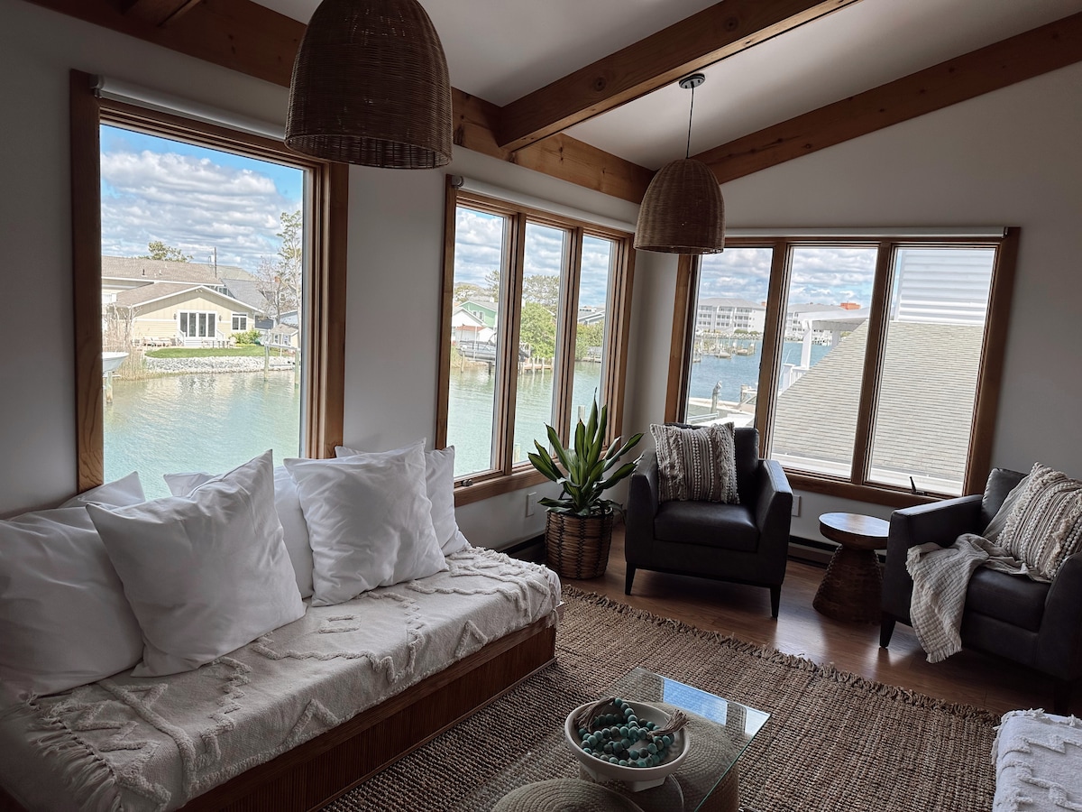 Anda tidak pernah melihat kawasan dermaga seperti ini. Selamat datang ke Edgewater Escape, apartmen loteng mewah di tepi pantai yang terletak sepenuhnya di atas teluk di jalan 7 di pusat bandar Ocean City. Duduk di beranda depan teluk atau melepak di dalam dan lihat bot, ikan lumba-lumba, burung, dan kadang-kadang anjing laut berenang dalam jarak beberapa kaki dari anjung. Loteng ini mempunyai katil bersaiz king yang luas dan sofa di tingkat bawah menarik keluar ke katil queen yang selesa. Baru-baru ini diubahsuai, ia dilengkapi sepenuhnya untuk perjalanan besar anda atau percutian inap yang tenang:)