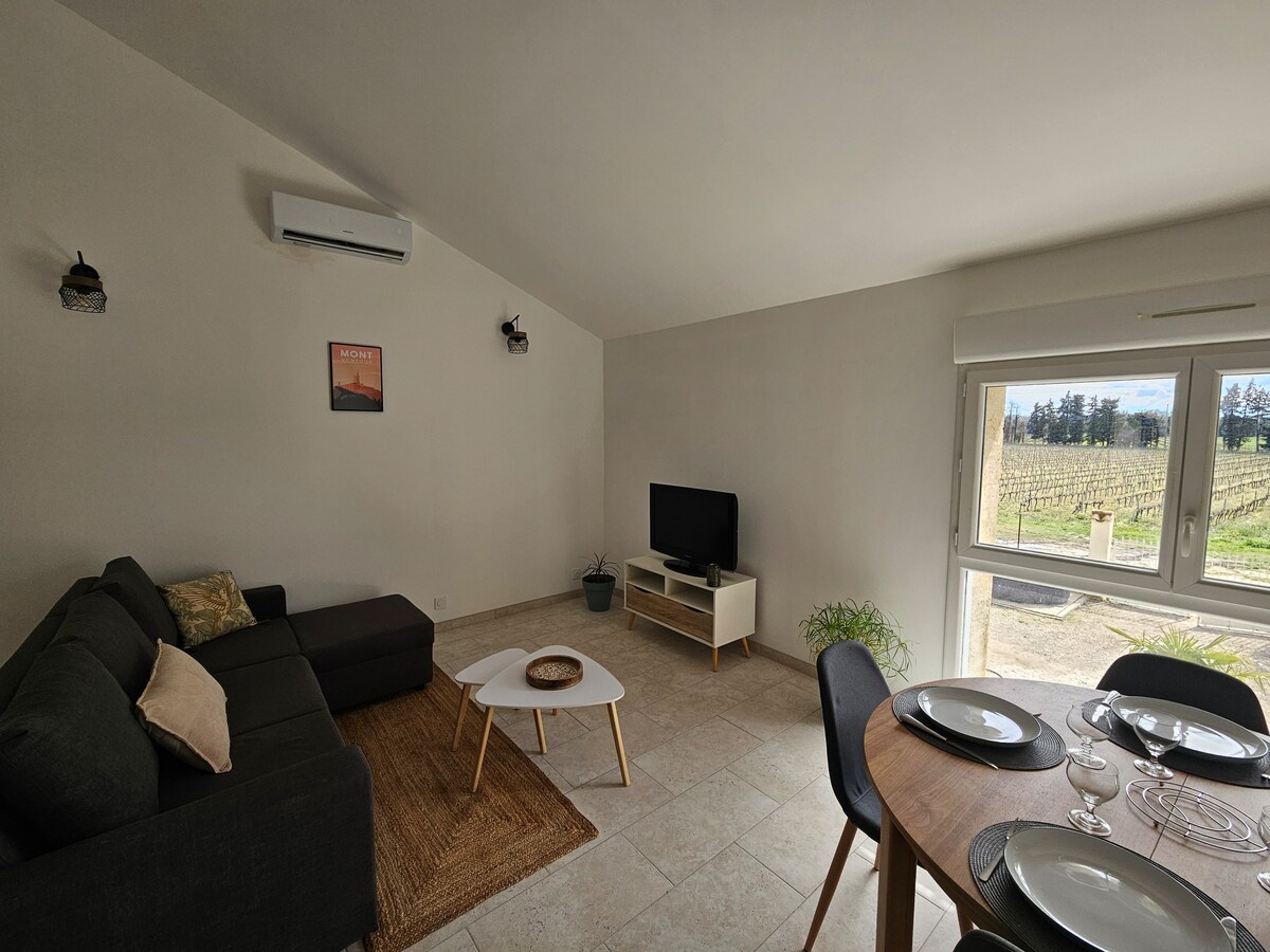 Studio 20 m2, ( serba lengkap,dan berhawa dingin),terletak di penginapan kami, tempat letak kereta persendirian, kolam renang untuk diri anda sendiri!! oPTIONAL (kadar tambahan) model SPA ALINA "Halawann" untuk 2 orang!! Terletak di kampung violès, 2 langkah dari renda Montmirail, 40 minit dari gergasi Provence "Le Mont Ventoux", datang melawat banyak bilik bawah tanah di rantau kami, pasar kami, pendakian .. 10 km dari Orange atau Vaison-la-Romaine, 30 km dari Avignon (perayaan).