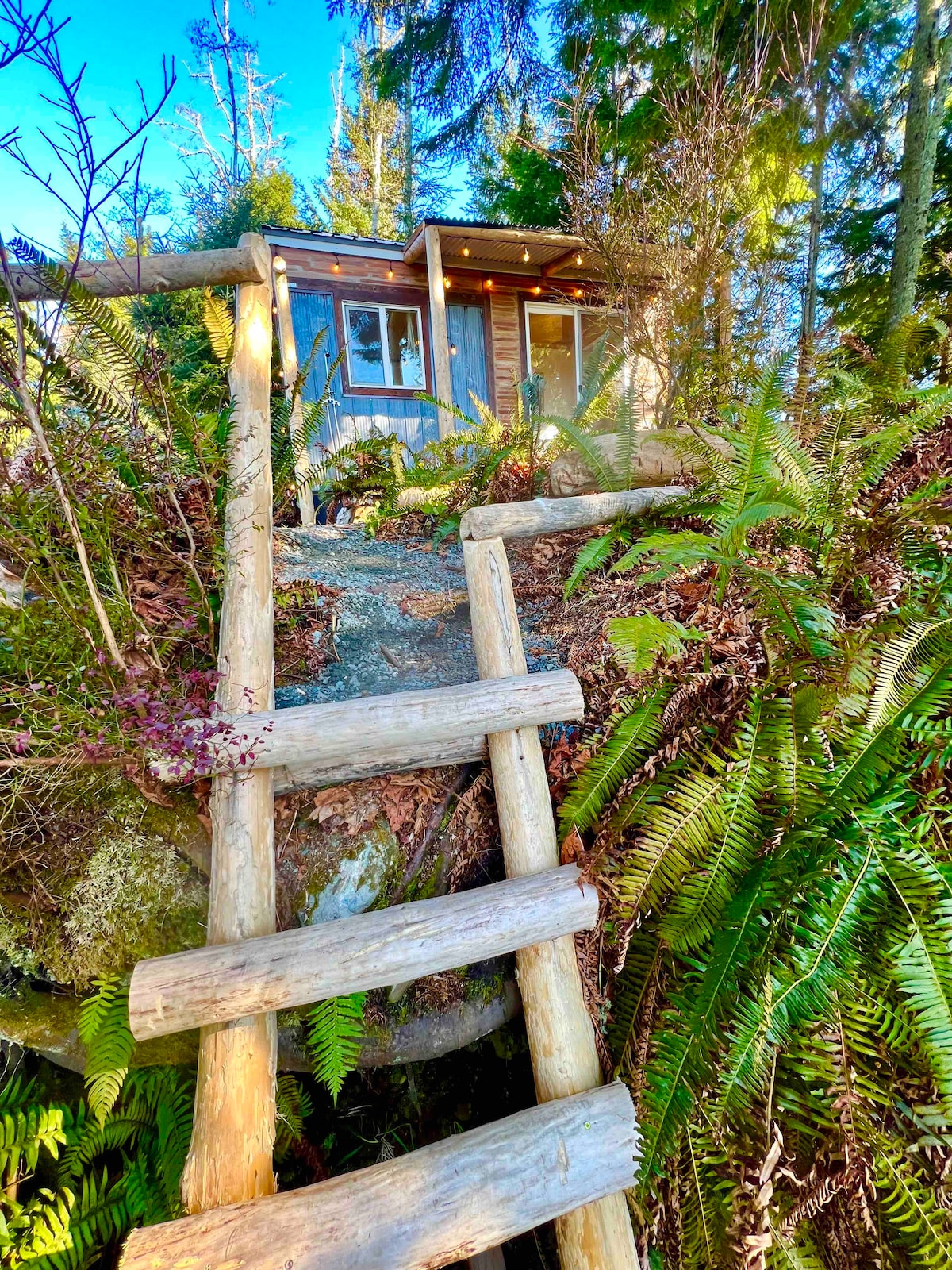 A perfect ocean-side Suite & Sauna tucked in the trees and ferns at the end of a quiet culdesac. The newly built shipping container suite design is modern, light, clutter-free, clean, and features a Sauna / Warm Room. An ideal stay for one or two guests. Stay in and relax, or walk down the trail through the forest will find you at the ocean where you can watch the waves, sunsets or continue walking up to China Beach. The location is quiet, safe, and comfortable.