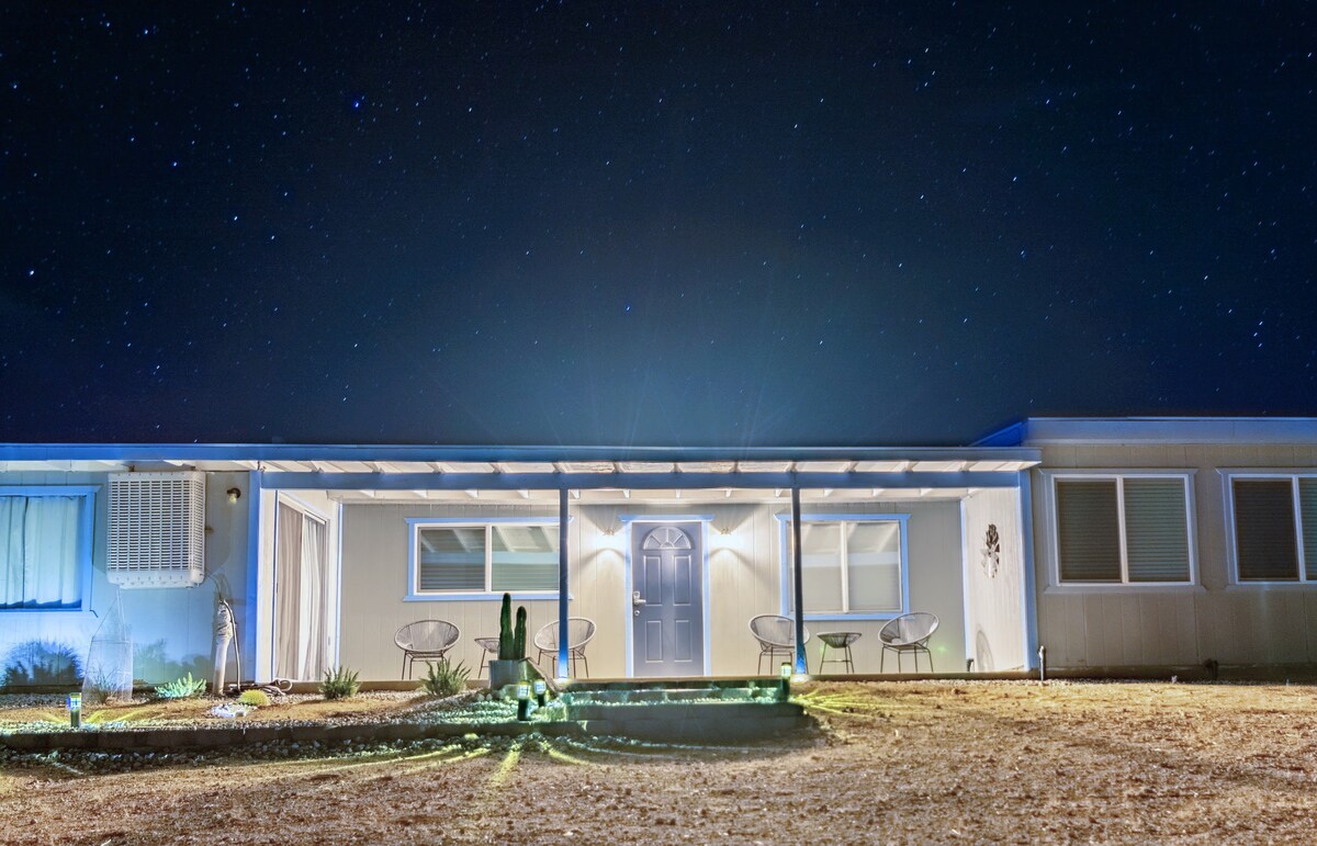 Terima kasih kerana mempertimbangkan Moon Camp! Sila baca peraturan penginapan sebelum membuat tempahan! Moon Camp adalah tempat percutian padang pasir yang benar-benar unik. Rumah ini moden, lapang dan dikelilingi oleh Pokok Joshua. Lihat keterangan penuh untuk butiran. Ini adalah tempat untuk berehat, meneroka dan berinovasi. Di luar rumah utama terdapat kawasan luaran yang damai lengkap dengan lubang api, gril, buaian rajut dan kerusi rehat.