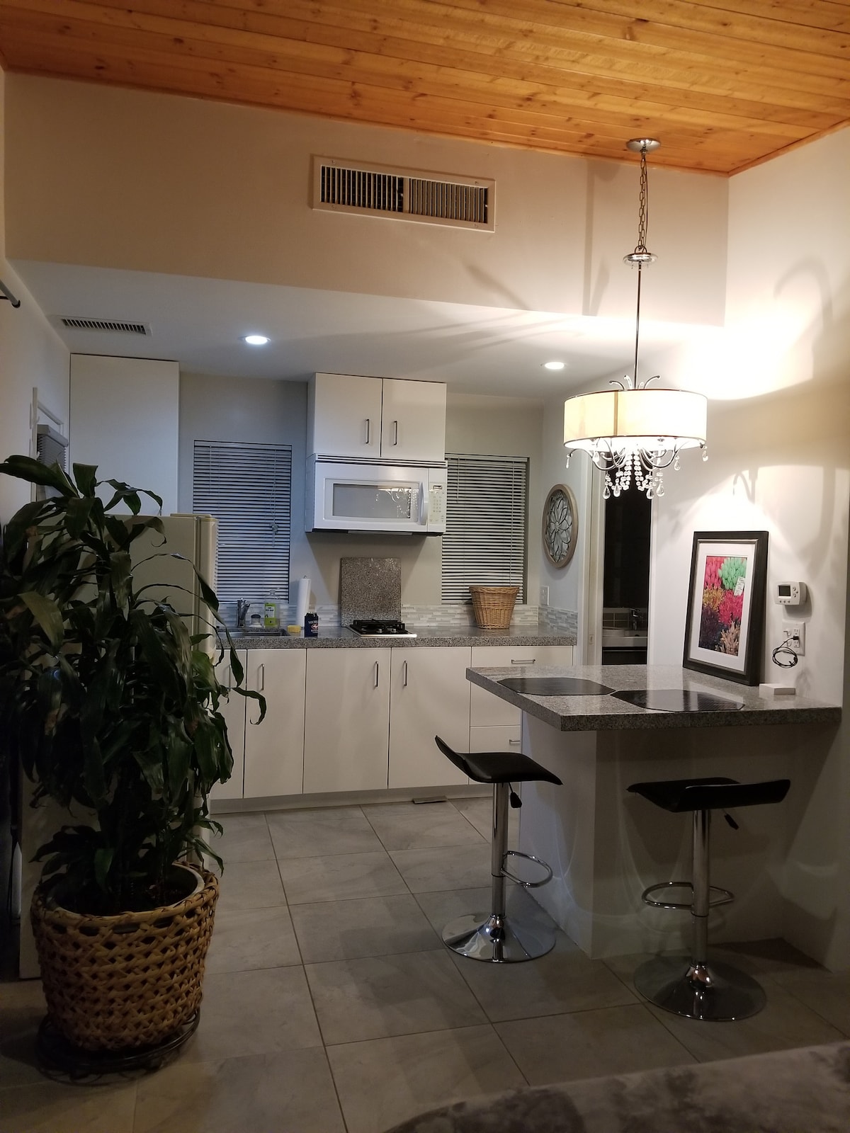 Lesen # 015827, Maksimum # orang 2, Maksimum # kenderaan 1 Casita moden pertengahan abad yang cantik seluas 320 kaki persegi, dengan siling berkubah. Pintu masuk persendirian, tempat letak kereta di luar jalan, katil king & bilik mandi dalam. Tingkap lantai ke siling yang menghadap kolam renang, spa, cabana, meja bomba dan taman yang terjaga rapi. AC/Pemanas, SmartTV skrin rata 42", Wi-Fi, cadar bersih kering berkualiti, meja makan/kerja, banyak ruang simpanan untuk pakaian & bagasi. Dapur kecil/frig mini yang lengkap menanti anda. Jarak Uber ke Pengangkutan Ulang-Alik April Music Festival.