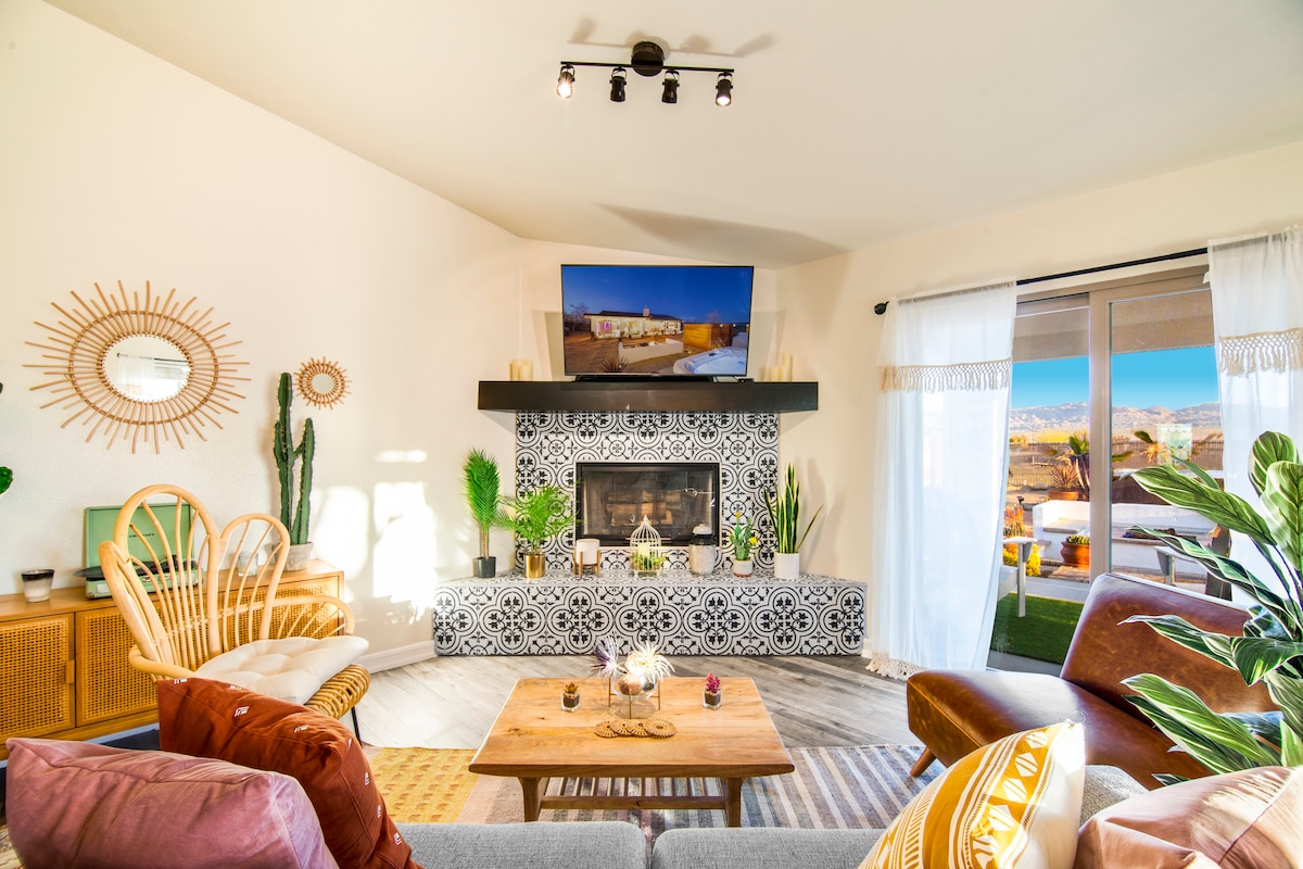 Selamat datang ke TheBoho, tempat pengembaraan dan bersantai bertemu di depan pintu anda! 2 minit ke pusat pelawat JTNP/pusat bandar JT, dan hanya 7 minit dari pintu masuk JTNP! Sesuai untuk pasangan, kumpulan dan keluarga KEMUDAHAN: • Ruang makan dalaman/luaran • Dapur yang lengkap • Patio besar dengan katil siang & kerusi berjemur • Kolam koboi • Sauna inframerah (Baru) • Tab mandi air panas untuk 6 orang • lubang api, dengan kawasan tempat duduk yang luas • Buaian rajut • Pancuran mandi luar • Gril BBQ (baharu) • Mesin basuh/pengering Penginapan Tanpa Haiwan Peliharaan