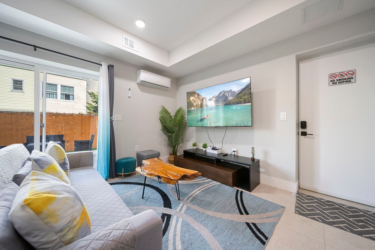 Nikmati penginapan yang selesa di apartmen tingkat taman yang menarik ini yang menampilkan ruang tamu yang cerah, dapur yang serba lengkap, dan bilik tidur yang besar. Bilik mandi moden, bersih dan cerah, dengan ventilasi udara siling untuk keselesaan. Tetamu menikmati akses halaman belakang langsung—sesuai untuk kopi pagi atau berehat selepas seharian di luar. Terletak berhampiran dengan sambungan bas ke NYC dan beberapa minit dari Hoboken, apartmen ini menawarkan percutian yang tenang untuk pasangan atau pengembara solo dengan akses bandar yang mudah.