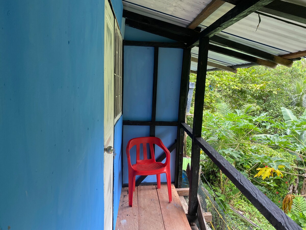 Cabaña privada ideal para pareja. Tiene su ducha y baño interno y una cama doble. Tiene un balcón con mesita y está rodeada de jardines donde se pueden observar aves y mariposas. El espacio del hostal es cerca a la playa, unos tres minutos caminando. Está ubicado en una zona muy tranquila de la comunidad la barra, al frente del hostal está un cocale y detrás está el manglar. Es un sitio perfecto para descansar y para disfrutar de la naturaleza.