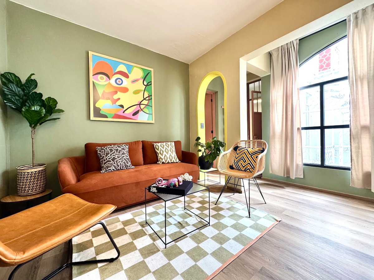 Hip 2BR/2BA dengan penyaman udara di Colonia Juarez yang bergaya