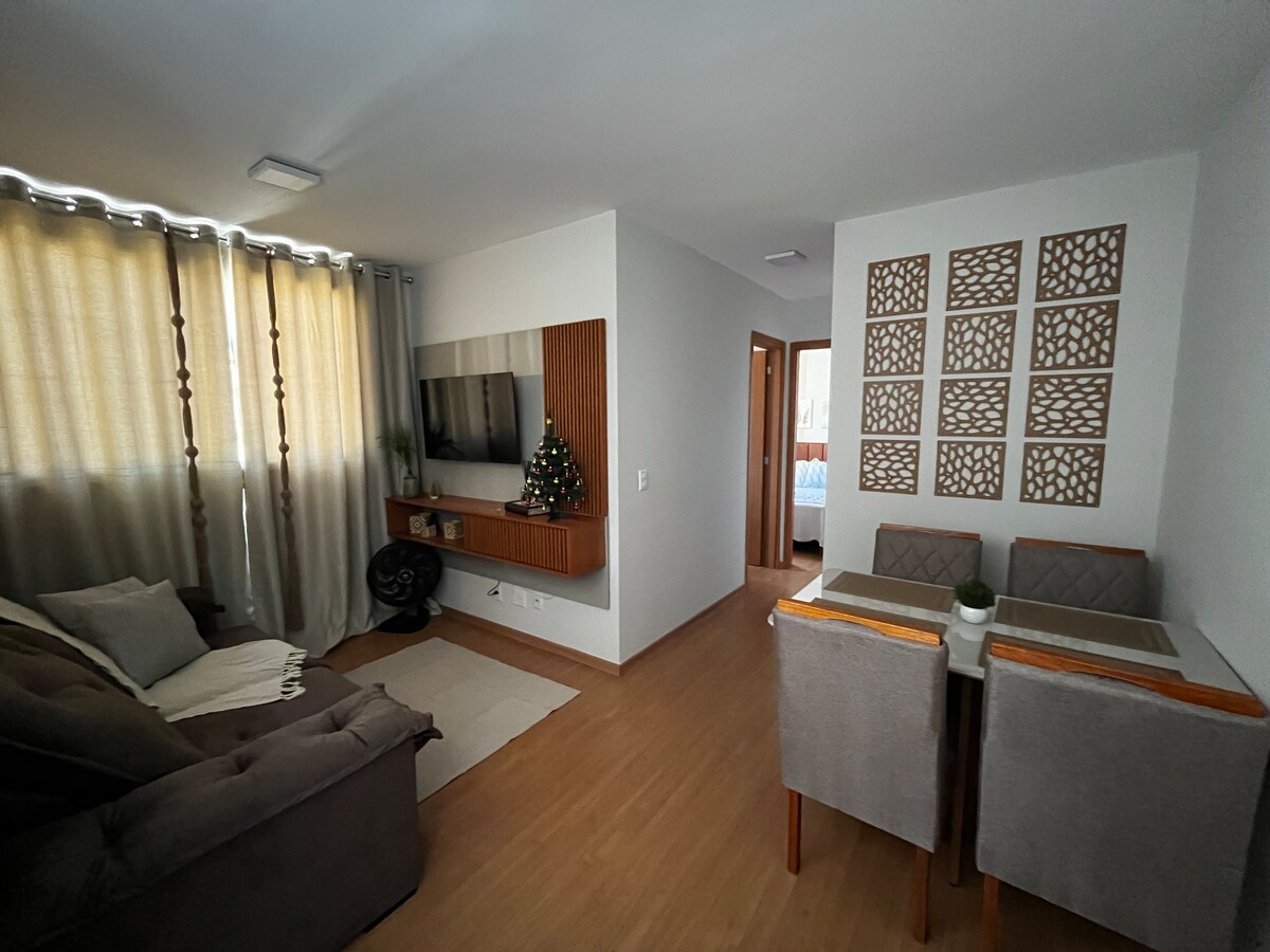 Nikmati keselesaan dan praktikal apartmen ini di Heart of Juiz de Fora. Dua suite, satu dilengkapi dengan katil kelamin dan satu lagi dengan dua katil bujang (Bicama), Kipas Siling di dua bilik tidur, dapur penuh dilengkapi dengan dapur, peti sejuk, ketuhar gelombang mikro, lava dan kering, dan semua peralatan yang diperlukan untuk penginapan anda. Kawasan ini kaya dengan kedai, restoran, bar, farmasi, bank, dan lain-lain... Kondominium ini mempunyai Kolam Renang, Akademi, Kawasan Gourmet, Coworking. Ordinan Jauh.