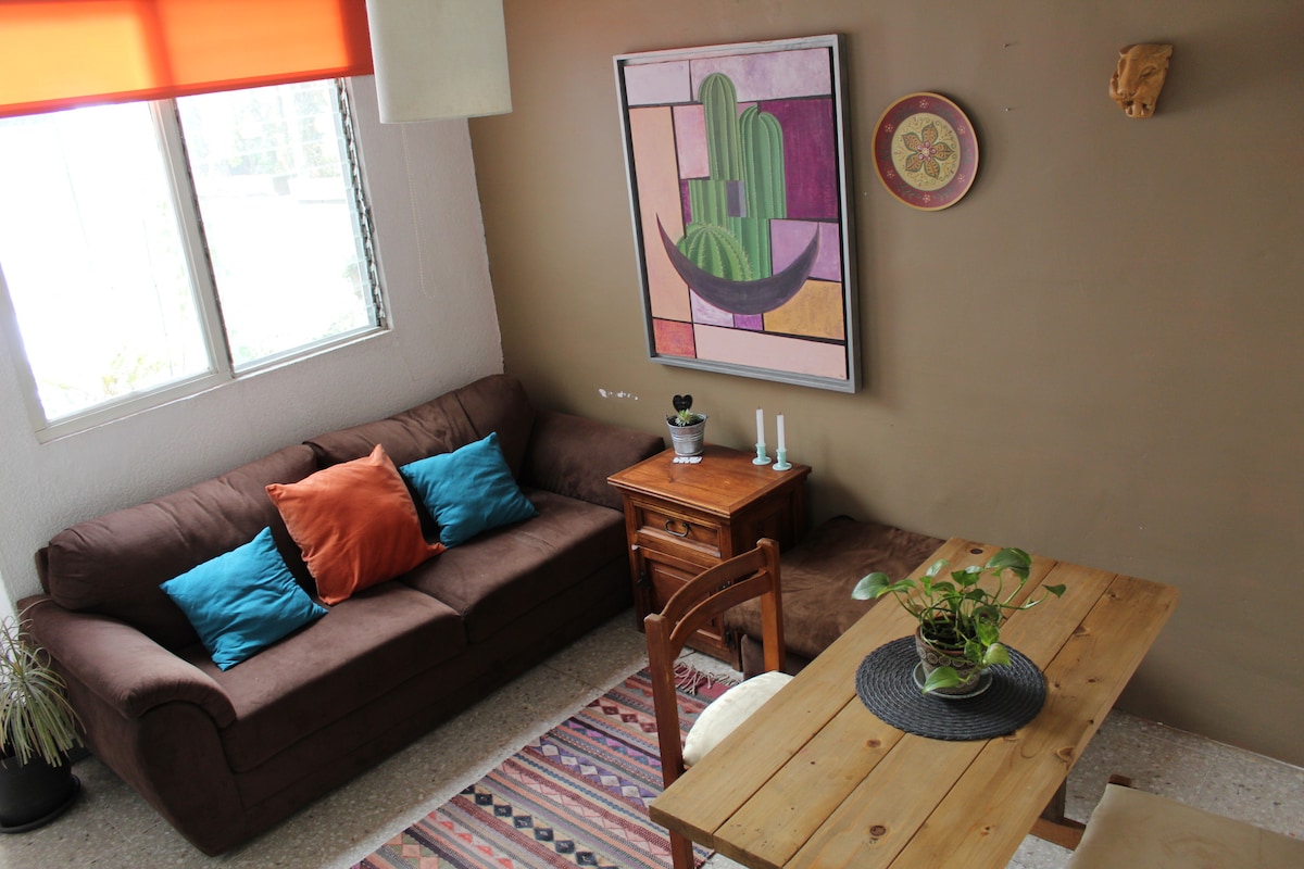 Apartmen yang luas, lengkap dan baru. Dengan taman bumbung yang menakjubkan untuk berlatih Yoga, Meditasi atau hanya menikmati kopi yang lazat sambil anda menyaksikan matahari terbit, atau berehat sambil membaca buku kegemaran anda. Terletak secara persendirian sangat dekat dengan 5 de Febrero y Zaragoza, Colonia Prados Capilla. Berhampiran dengan pusat bandar Queretaro, pusat membeli-belah, hospital utama bandar ini. Maksimum 2 tetamu, tiada mesyuarat, tiada tetamu: SILA BACA PERATURAN SEBELUM MENEMPAH.