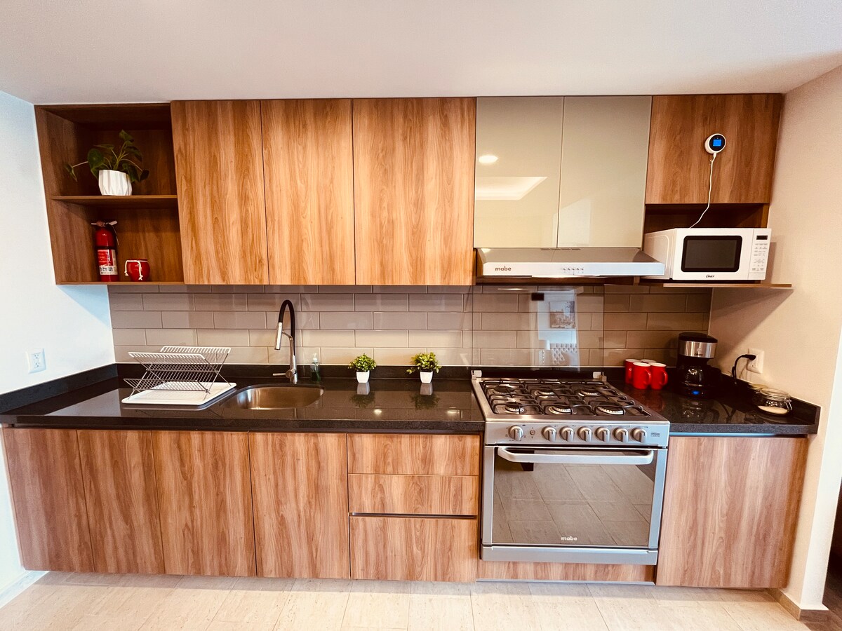 Nikmati penginapan yang selesa dan selamat di Juriquilla, Querétaro. Apartmen moden, cerah dan lengkap, sesuai untuk berehat atau bekerja. Lokasi yang sangat baik, berhampiran plaza (ANTEA), hospital (MOSCATI), pasar raya dan lebuh raya, dengan ketenangan dan privasi kawasan ini. Sesuai untuk pasangan dan keluarga kecil. Ia menawarkan daftar masuk mudah dan perkhidmatan pantas semasa penginapan anda untuk menjadikan pengalaman anda mudah dan bebas masalah.