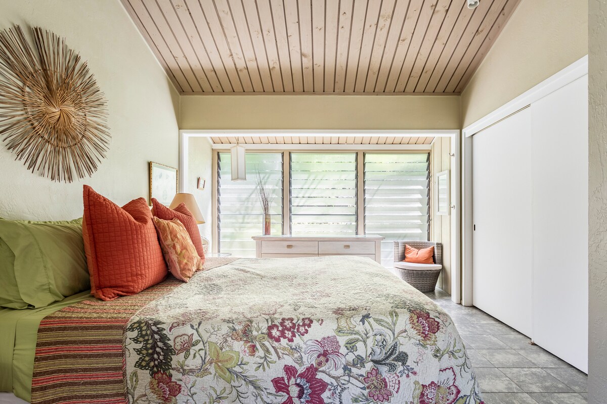 Berjalan ke dua pantai dari La Caseta untuk menikmati matahari terbenam Kona yang indah dan bermalam di lanai dengan minuman di tangan dan tokek berebut di atas kepala. Tiada agensi yang sukar dihubungi di sewaan yang sah ini, dengan hos pemilik penginapan. Siling kasau kayu, kerusi rotan belakang sayap, seni terpilih, dan tumbuhan tropika menyada ruang dengan gaya. Ini adalah rumah yang lebih tua di mana kami bergantung kepada angin perdagangan dan lautan berenang di atas penghawa dingin.
