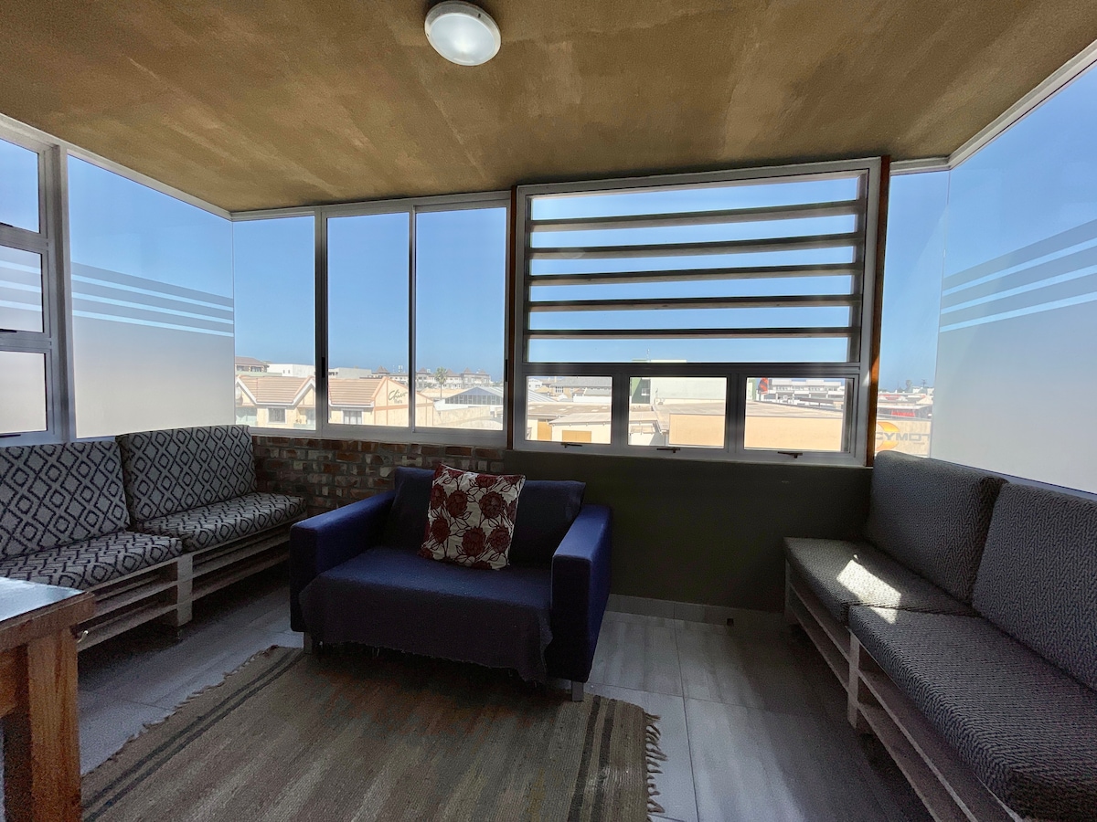 Neat and spacious 2 bedroom, full bathroom, open plan lounge and kitchen flat. Outdoor BBQ and deck with a fantastic view of the ocean and desert. Situated on the first floor in the CBD. It's a tiny holiday town with a big heart. Your stopover en-route to and from Damaraland and Etosha. Perfect stay over base to go on daily nearby excursions. NO GARAGE. NO PETS Laundry available on request. Daily cleaning services on request. We can accommodate 2 extra individuals.