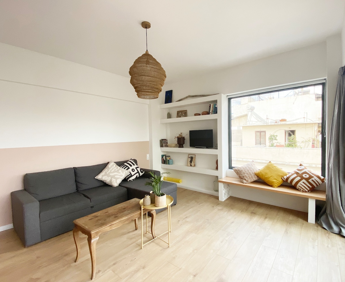 Loteng berhawa dingin 70m2 yang baru siap, terang, bergaya dan lengkap boleh menampung keperluan 1-5 orang pengembara dengan mudah. Ia dibina di Kalamata di kejiranan yang tidak sesak di sebatang jalan yang tenang dengan tempat letak kereta yang mudah. Tetamu mempunyai akses penuh kepada semua peralatan rumah, peralatan , kemudahan, serta sambungan wifi. Kedua-dua pantai tempatan (1km) dan pusat bandar (2km) menjadikannya destinasi yang mudah. Kedai runcit, kedai makan, kedai roti kecil semuanya dalam jarak berjalan kaki yang selesa.