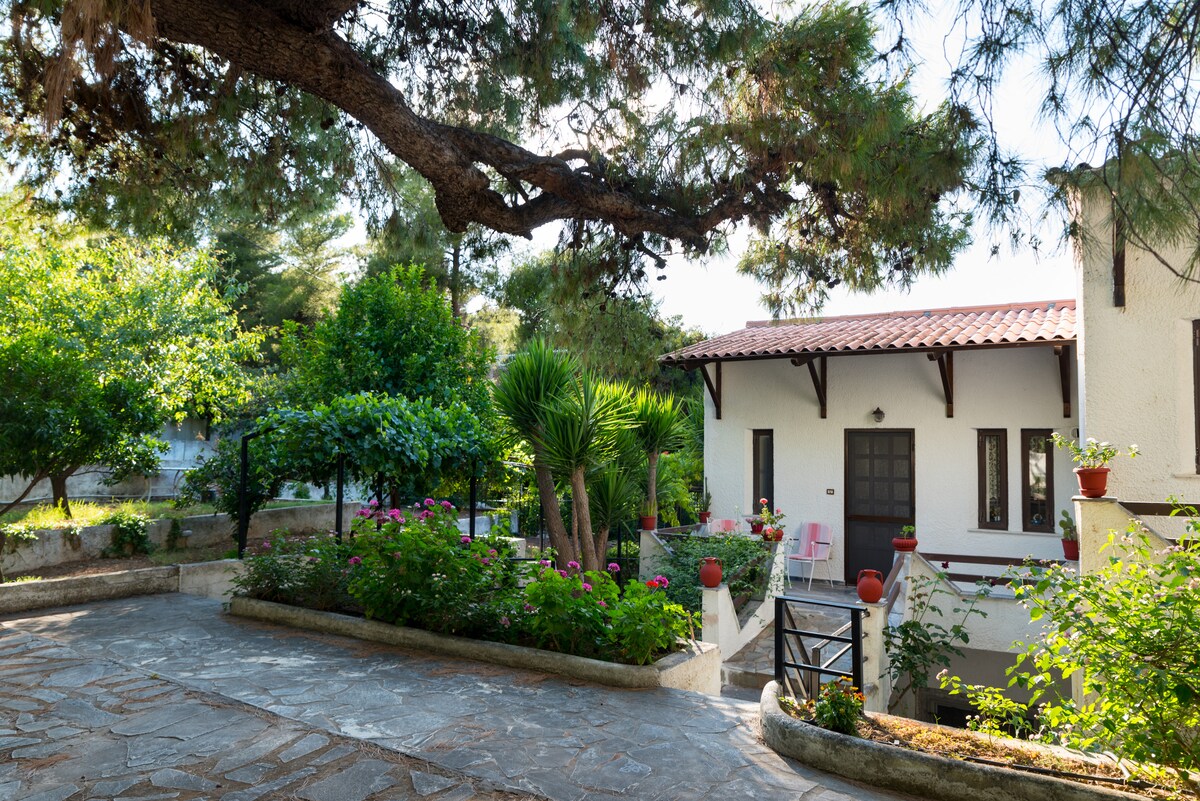 Suite minimal, baru sahaja diubahsuai 10 minit dari lapangan terbang. Bilik persendirian dengan bilik mandi, balkoni, taman dan pemandangan yang menakjubkan. Reka bentuknya yang elegan dan gaya moden akan memberikan anda pengalaman penginapan yang tidak dapat dilupakan. Terletak di atas bukit, sangat dekat dengan: - Metropolitan Expo (10 minit), - Pelabuhan Rafina (15 minit), - Smart Park - Zoo - Stesen Metro Sesuai untuk percutian, membeli-belah, perjalanan perniagaan atau mereka yang ingin bekerja secara digital dengan wifi yang cepat dan percuma.