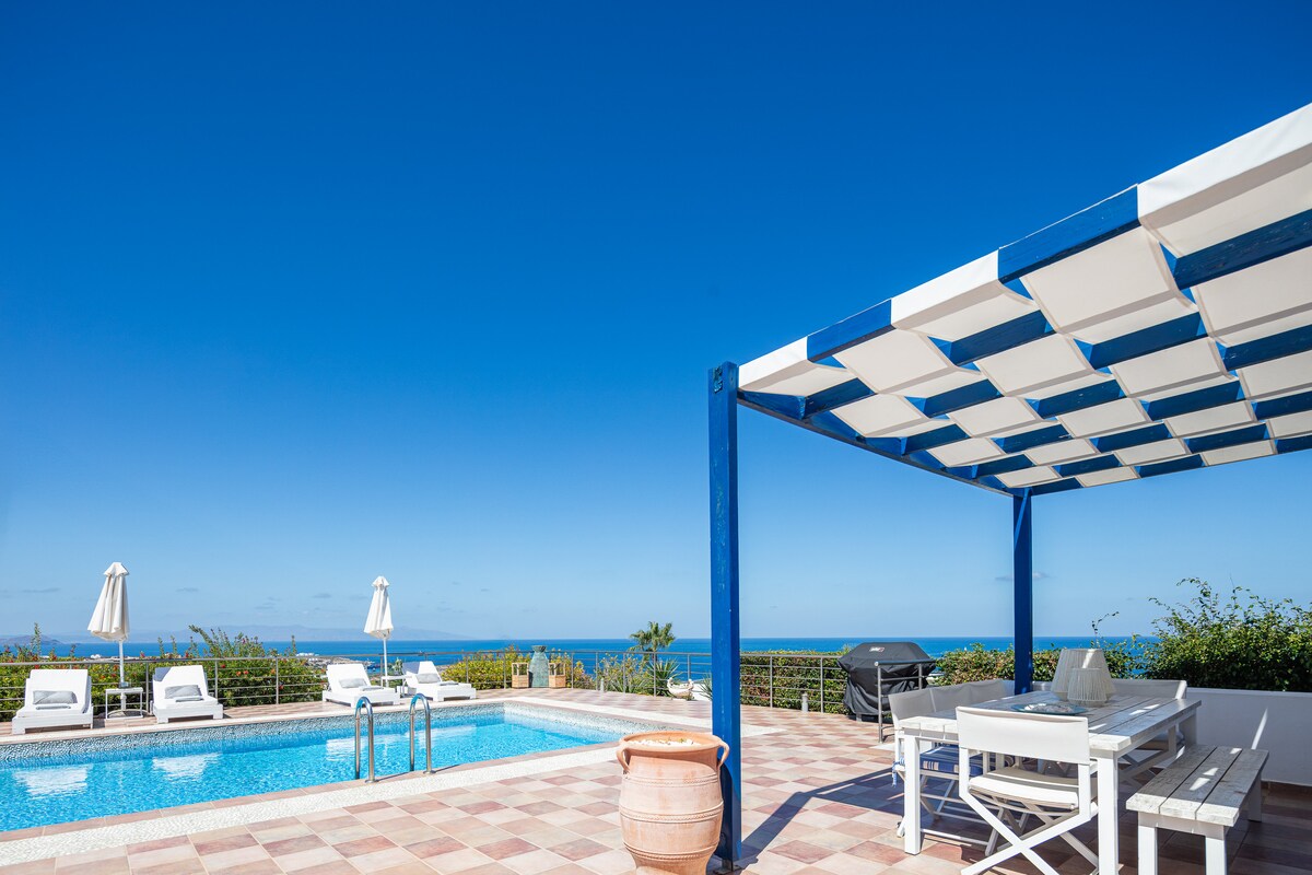 Seaview Villa Patroklos, kolam renang-1 minit berjalan kaki ke pantai!