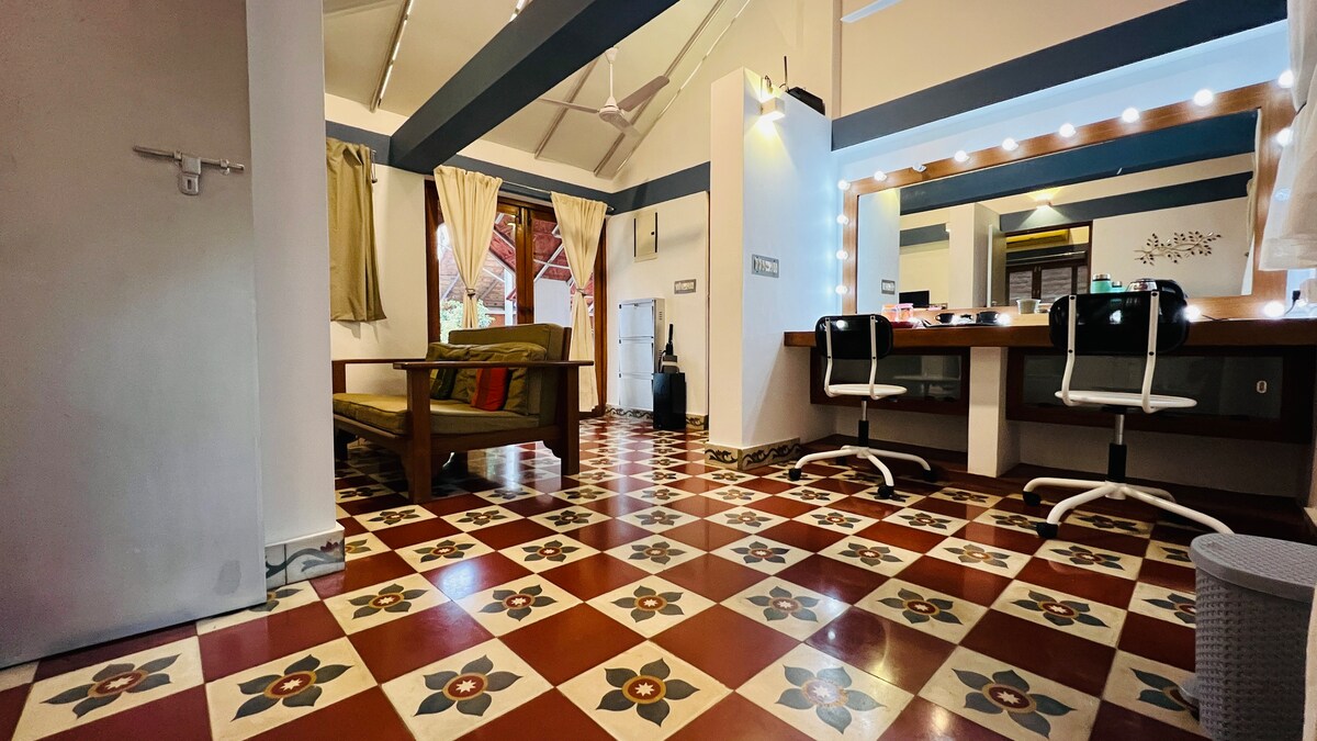 The earthen hut, located amidst the cashew orchard, is a unique pioneer-style hut made of wood, mud, and coconut leaves, using completely sustainable materials. It features a curated open-hut design surrounded by lush greenery, offering guests a unique living experience. The hut includes a kitchen, a separate standalone bathroom, and a pebble-paved patio with seating areas for enjoying coffee! The best corner is the balcony, which offers the guest to witness the sunset, sunrise and stargazing.