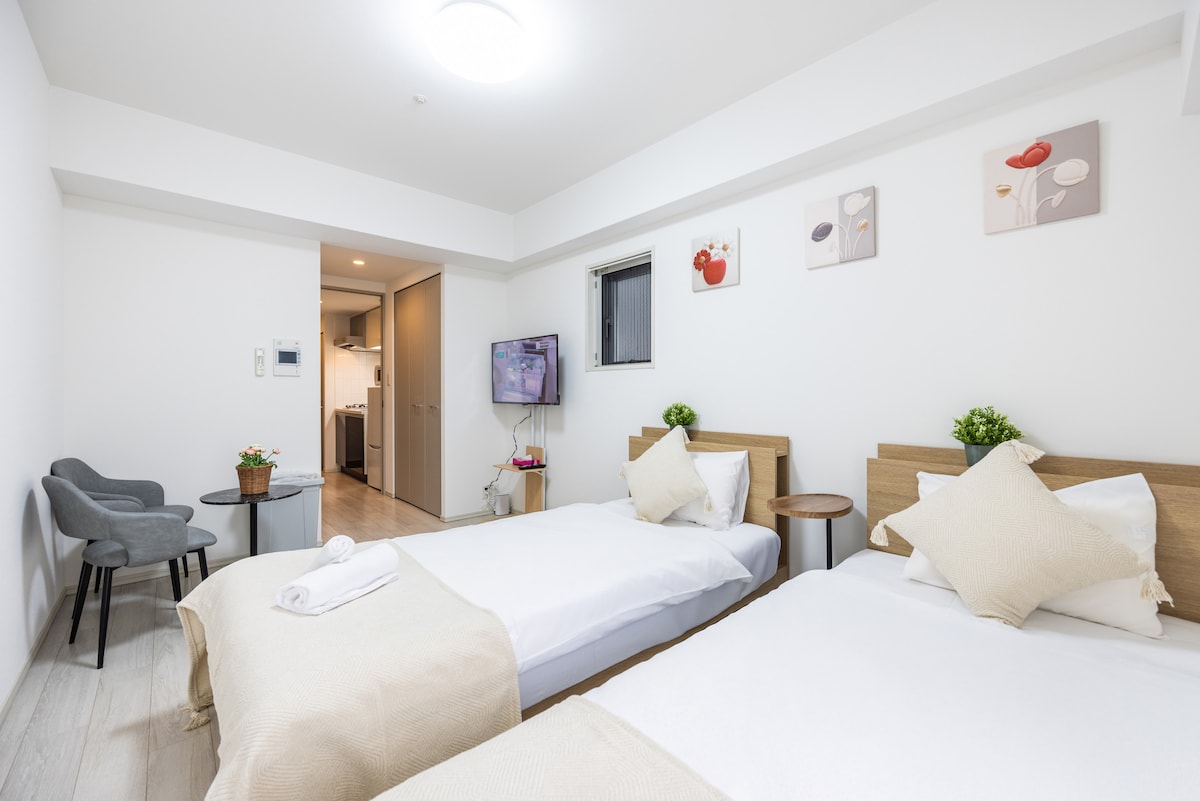Akses mudah ke pusat bandar Osaka, Tsutenkaku, jalan permainan animasi, apartmen balkoni Jepun baru untuk dua orang, diskaun telah dibuka untuk tempahan semasa cuti musim sejuk dan musim bunga ceri 2026