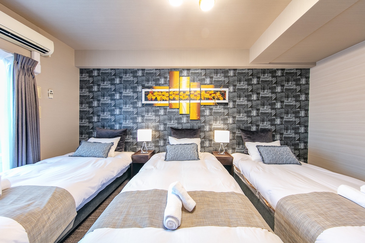 Selamat datang ke apartmen saya di Osaka. Bersantai dan nikmati percutian anda di apartmen kami yang menyeronokkan, selesa dan moden. Kami bertujuan untuk menyediakan pelbagai penginapan tetamu yang selesa dan lengkap. Apartmen saya terletak di tingkat 7 daripada 13 tingkat. Ini adalah jenis rumah sudut yang paling luas di bangunan ini, dengan 1 ruang tamu, 3 bilik tidur, 1 dapur, 1 bilik mandi, 2 bilik mandi berasingan dan 1 balkoni sudut. Semua bilik dilengkapi dengan peralatan rumah mewah dan pelbagai keperluan harian, termasuk WiFi tanpa had percuma, TV pintar skrin besar, pengering rambut dan sebagainya. Bilik mandi mempunyai pemanas, tab mandi dan pancuran mandi, di mana anda boleh berehat dan menonton TV. Dapur kami mempunyai semua yang anda perlukan, jadi jika anda mahu, anda boleh memasak sendiri. Apartmen ini terletak di pusat bandar Osaka. Jalan komersil yang sibuk dan sibuk berada di depan pintu, jadi kemudahan tidak dapat ditandingi. Terdapat kedai serbaneka 7-11 di tingkat bawah dan pelbagai restoran hebat di sekitarnya, dari barbeku, yakitori atau kedai mi hingga restoran besar yang menyajikan sushi dan sashimi yang halus, anda sentiasa boleh mencari tempat untuk merasai rasa Jepun. Selain itu, apartmen ini terletak di pusat bandar yang sibuk, memudahkan anda untuk mengunjungi mana-mana tempat yang anda mahu. Dotonbori dan Pasar Kuromon yang terkenal hanya 3 minit berjalan kaki dari hotel, dan anda boleh berjalan kaki ke Namba atau Shinsaibashi dalam masa 10 minit. Selain itu, anda boleh mengambil kereta api bawah tanah atau JR terus dari sini ke Kyoto, Nara atau Kobe. Selepas anda menempah, anda boleh menghubungi saya melalui Airbnb dan saya akan menjawab secepat mungkin. Saya tinggal berhampiran, jadi sila hubungi saya jika anda memerlukan saya. Saya akan melakukan yang terbaik untuk menjadikan pengalaman anda sempurna.