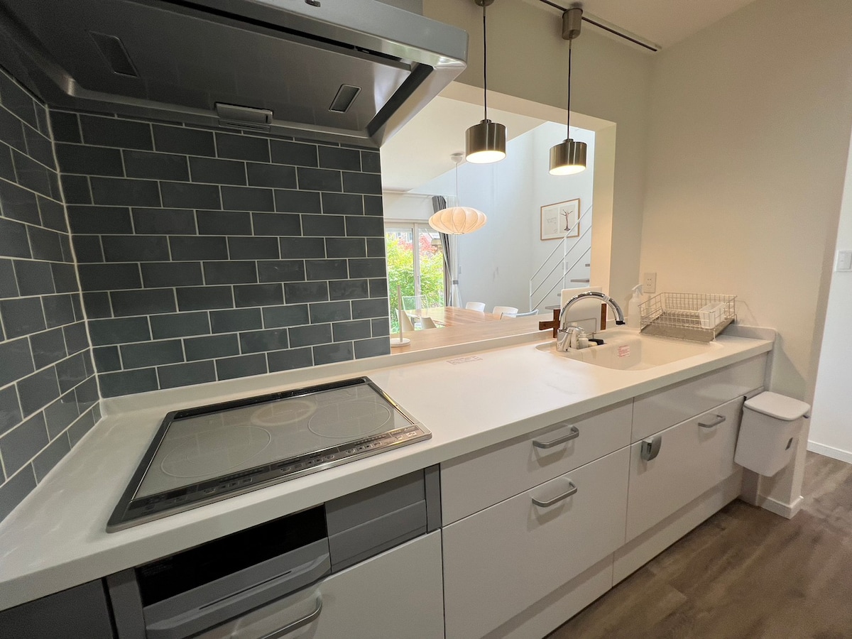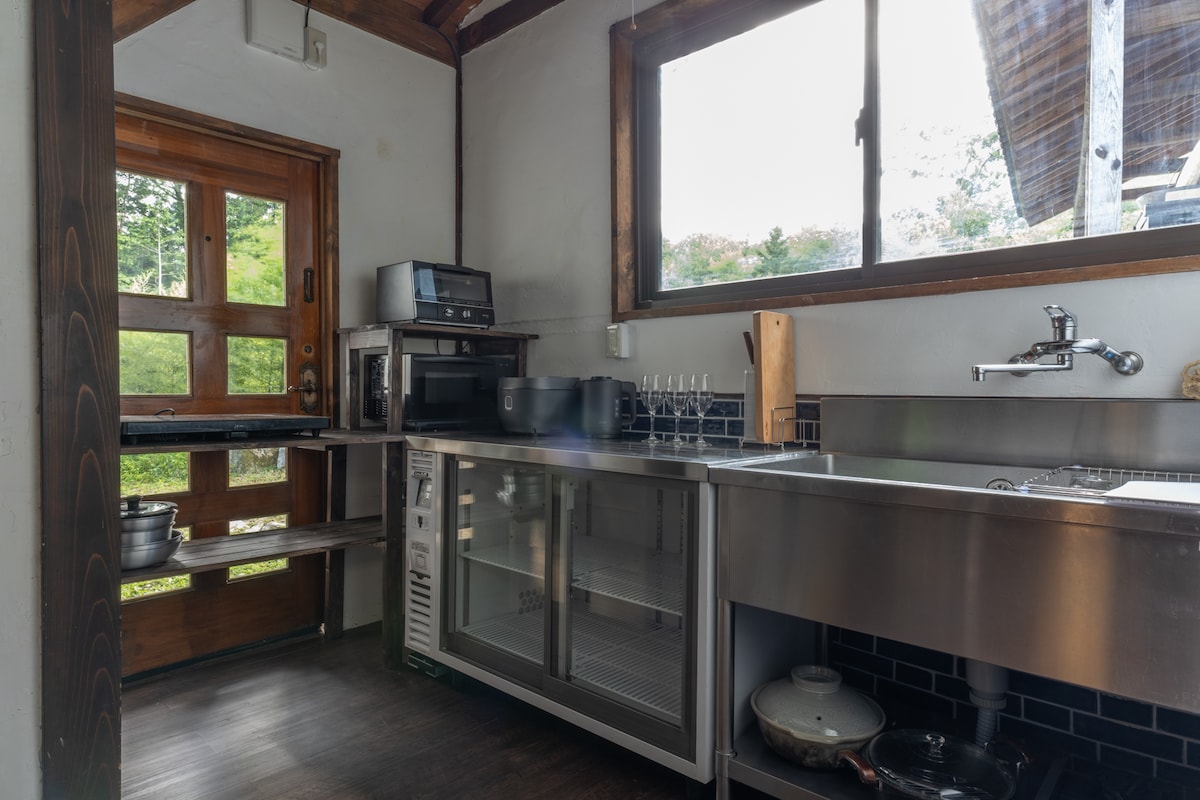 Dapur rumah persendirian dengan barbeku yang menghadap Mt. Fuji, mandian, dan pemanasan dan penyejukan!