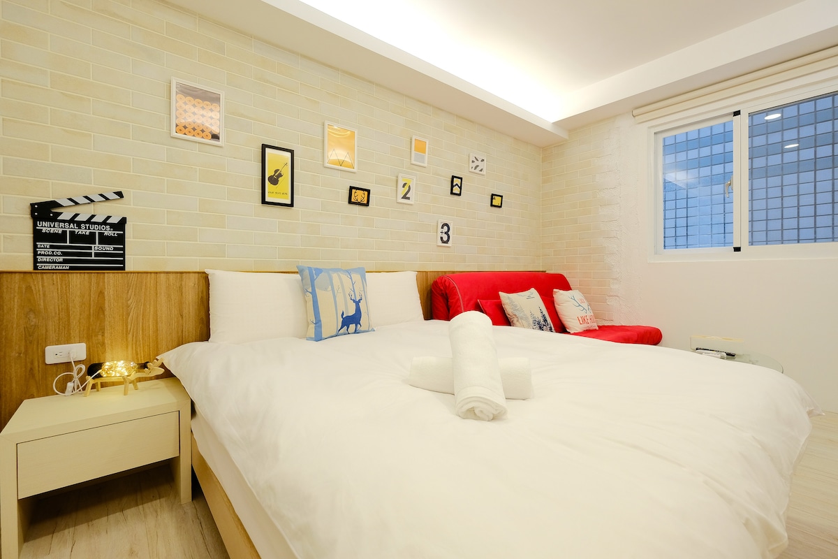 Bilik Suite Double Berasingan Xingxinglu/1 minit dari Stesen Formosa Boulevard/Pasar Malam Liuhe/Stesen Kereta Api Kaohsiung dengan tingkap