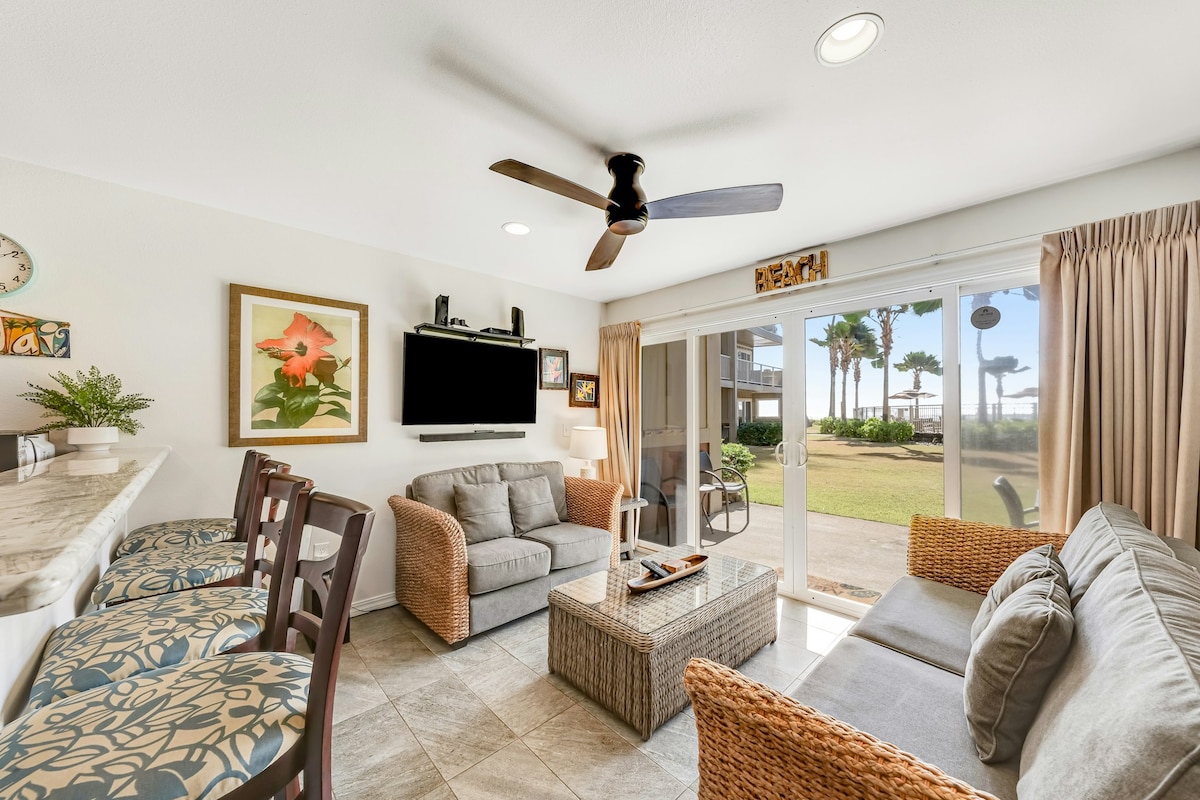 Unit tingkat 1 yang dikemas kini ini mempunyai lanai persendirian untuk menikmati pemandangan laut yang menakjubkan, matahari terbit yang menakjubkan atau mungkin bulan terbit malam, jika tiba masanya! Kolam renang hanya 15 kaki dari lanai, dan Pantai Waipouli yang terkenal di dunia hanya 20 langkah jauhnya! Dan apabila kita mengatakan "tepi laut", maksud kita... OCEANSIDE! Jika anda sedang mencari tempat yang santai dan menyeronokkan untuk melarikan diri daripada semuanya, maka Garden Island of Kaua'i adalah tempat yang anda mahu pergi dan Oceanside Retreat di Kapa' a adalah tempat anda perlu menginap!