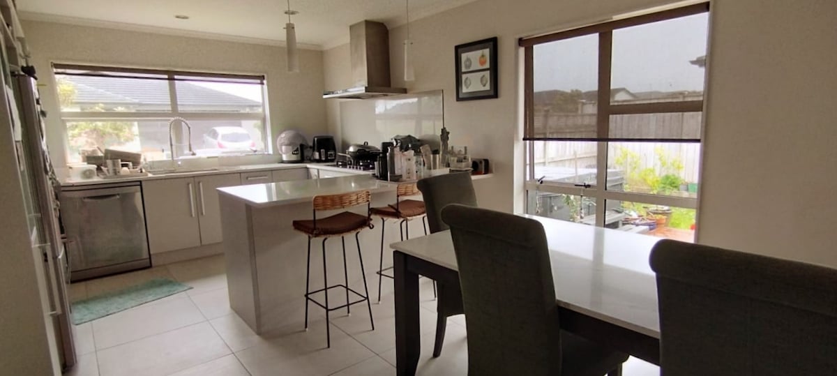Ruang moden yang selesa. Bilik studio besar yang mengandungi katil Queen, meja & kerusi dan dapur kecil dengan peti sejuk, pembakar roti, microwave, cerek, teh, kopi, susu dan snek ringan. Studio bersambung dengan rumah utama, mempunyai pintu masuk sendiri dan kawasan luaran persendirian. Off street parking. Semi -rural with easy access to both Nth & Sth motorways. Kira-kira 2.5 km ke kampung.. 25kms dari Lapangan Terbang. Tiada pengangkutan awam jadi anda memerlukan kenderaan. Jika perlu boleh sediakan satu tilam angin dan letakkan katil bayi .