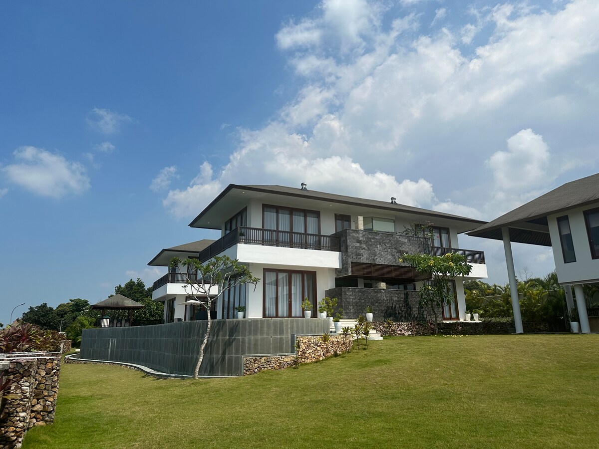 Luxury Bali-Style Villa in Batam with Ocean and Singapore Views Enjoy an exclusive stay at this stunning Bali-style villa in Batam, featuring breathtaking ocean views and a direct sight of Singapore. Designed with authentic Balinese architecture, the villa offers a serene and luxurious tropical ambiance. Unwind in the pool while watching the sunset on the horizon, surrounded by natural wood interiors, thatched roofs, and lush tropical gardens.