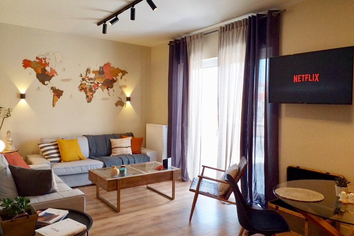 Reka Bentuk Mewah, Pemandangan Mainalo Menakjubkan, Lokasi Pusat!! Simone Luxury Suite adalah apartmen mewah seluas 82 meter persegi di tingkat 4, terletak di tengah-tengah daerah bersejarah, membeli-belah & hiburan malam Tripolis! Kediaman yang direka dengan indah & moden, Simone Luxury Suite menawarkan walaupun kepada tetamu yang paling mencabar pengalaman Tripolis yang benar-benar eksklusif dengan pemandangan Gunung Mainalo yang indah. Kemudahan kerja jauh (internet 50mbps & ruang kerja khusus) disediakan.//Mesra haiwan peliharaan!