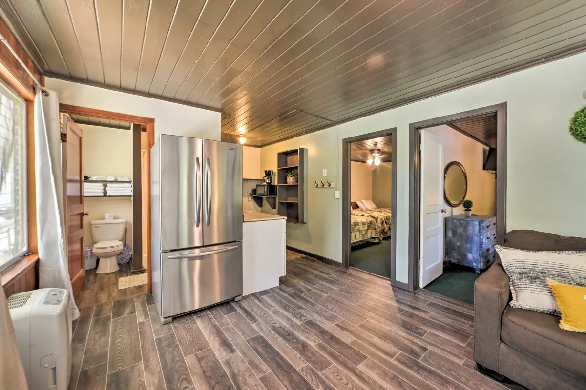 Float On Inn is a charming, pet-friendly A-frame just 150 yards from Kentucky Lake. Relax on the screened patio, toast marshmallows by the firepit, or cast a line from the shore. With cozy beds, fast Wi-Fi, and a rustic-modern vibe, it’s ideal for families, friends, and four-legged companions. Whether you’re catching bass or simply soaking up lakeside calm, Float On Inn is the perfect getaway.