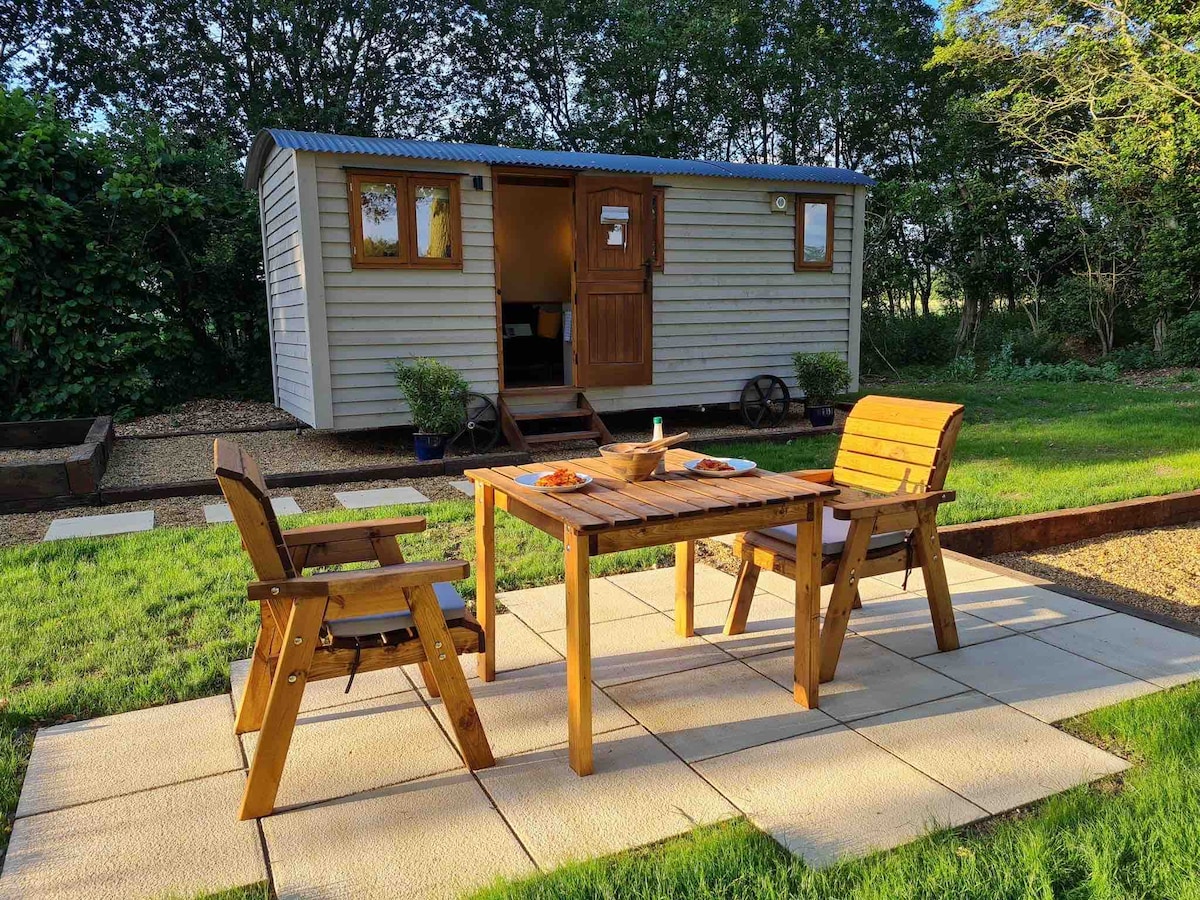'Charlotte-Rose' ialah pondok Shepherd buatan tangan kami yang mewah. Direka dan dibuat untuk menyediakan semua yang anda perlukan untuk keselesaan dan keseronokan anda. Pondok Gembala terdiri daripada katil double, ruang tempat duduk, dapur kecil dan bilik mandi serba lengkap. Anda akan disediakan dengan sarapan kontinental termasuk croissant, jus dan jem buatan sendiri, kopi, teh, gula & susu Tab mandi air panas persendirian tersedia dengan caj tambahan, bersama-sama dengan penggunaan BBQ, hasil tempatan untuk bahasa Inggeris penuh, fizz di atas ais dll.