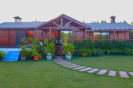 3BHK Wooden Cottage dengan Kolam Renang & Taman - Sarapan