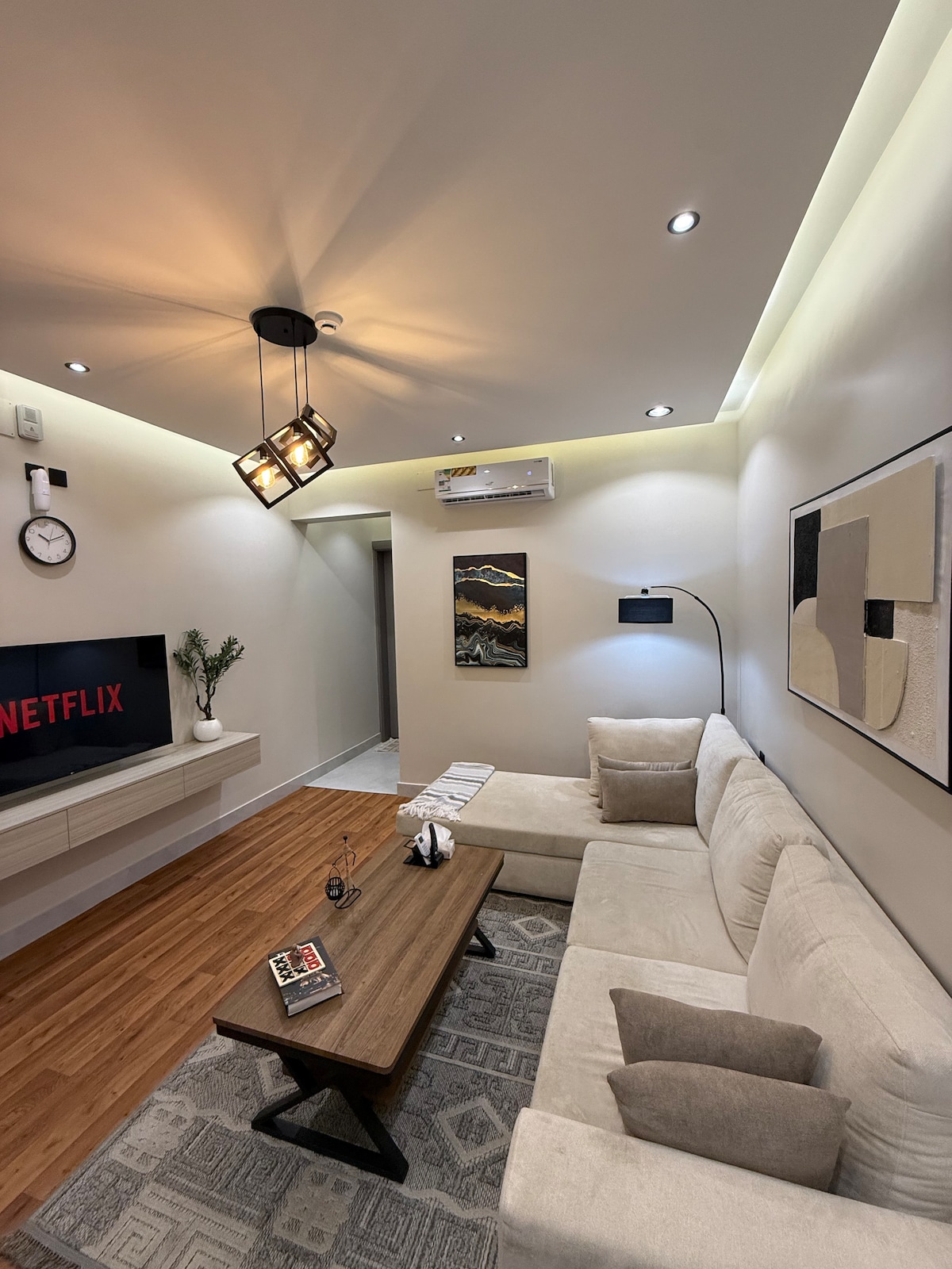 أهلاً وسهلاً.. -المكان مناسب لمن يفضل البساطة والراحة أثناء السفر. -المساحة عملية ومجهزة بكل الأساسيات: جلسه هادئه بتلفاز ذكي، WIFI مجاني، غرفة نوم مع سرير فندقي مريح، مطبخ صغير يحتوي على الأدوات الضرورية، ودورة مياه. -التصميم بسيط ومرتب، ويوفر جوًا يساعد على الإسترخاء بعد يوم من التجول أو العمل. -الموقع يسهل الوصول منه إلى أماكن مهمة في المدينة، سواء كنت تزور بغرض العمل أو السياحة. -يمنع التدخين وإقامة الحفلات ❌ أحاول دائمًا على أن تكون الإقامة مريحة ✨ "لا تتردد عن تقديم أي أستفسار🤍