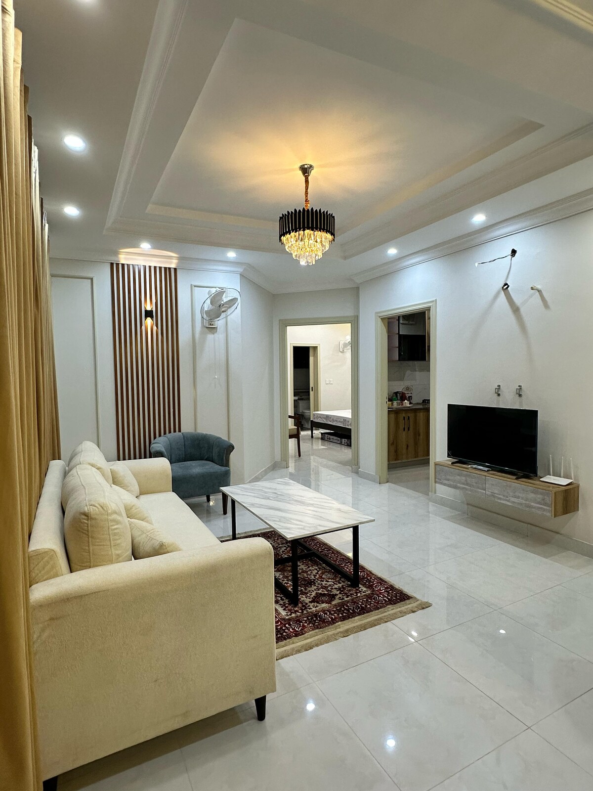 Nikmati penginapan mewah di pusat bandar Citi Housing Jhelum. Apartmen 1BR moden ini mempunyai katil king, ruang tamu bergaya, TV LCD, sofa dan balkoni yang cantik. Dapur dilengkapi dengan peti sejuk dan ketuhar gelombang mikro untuk penginapan yang selesa. Sesuai untuk pasangan, tetamu solo atau pengembara perniagaan yang mencari keselesaan, privasi dan pengalaman premium.