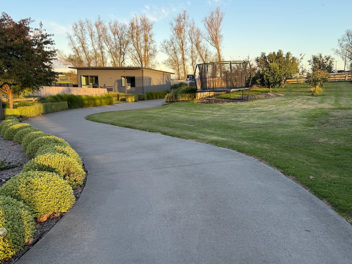 Hirup udara desa yang segar di tempat percutian seni bina kontemporari ini. Di luar, kediaman ini mempunyai estetika industri yang anggun dan bilik mandi luaran persendirian, manakala bahagian dalam dengan gaya reka bentuk butik, kelabu neutral, dan aksen kayu. Penginapan desa terletak di jalan desa New Zealand yang tipikal. Dikelilingi ladang tenusu dan kebun buah kiwi, tetamu mungkin melihat petani tentang kerja harian mereka. Anda bebas untuk melambai kepada mereka jika mereka memandu melepasi traktor mereka.