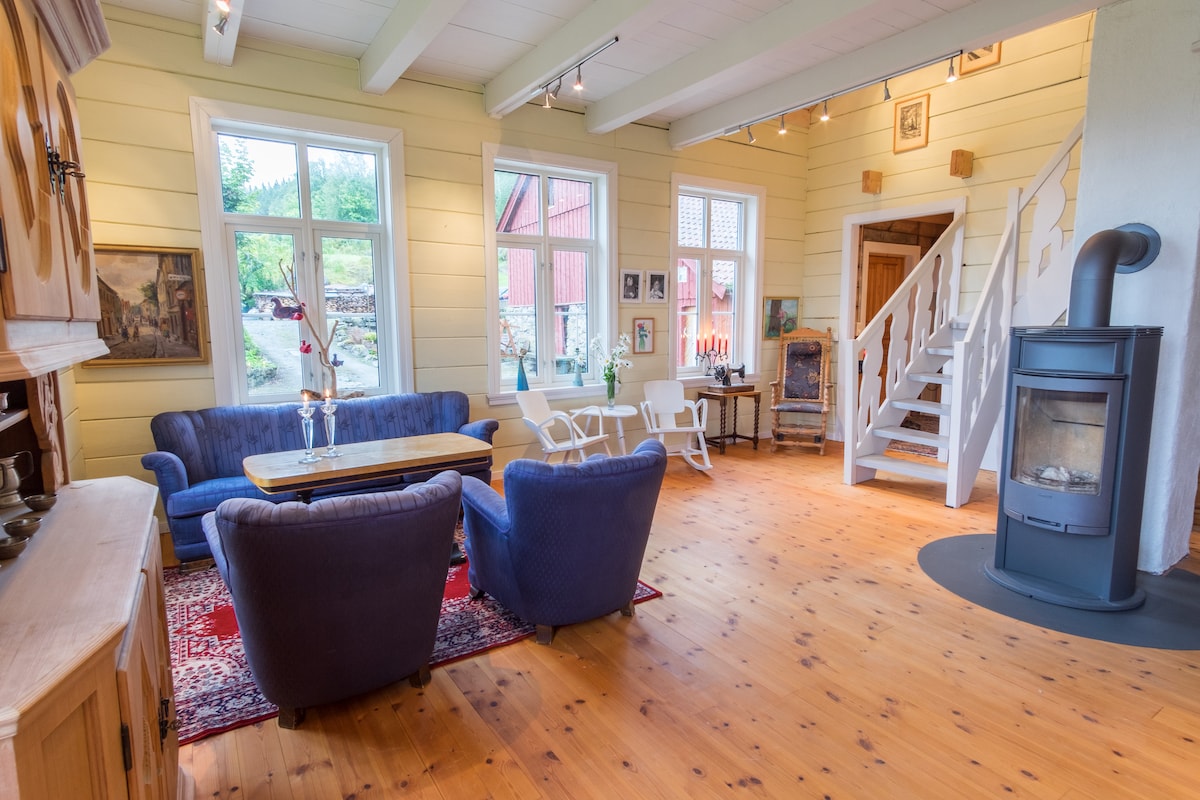 Rumah lama yang selesa untuk disewa terletak di ladang biri-biri organik tradisional di persekitaran yang indah. Nikmati pemandangan menakjubkan di atas fjord dan gunung. Kembara berjalan kaki adalah aktiviti yang popular, anda boleh berjalan terus dari beranda depan. Kami juga mempunyai bot kayu tradisional untuk disewa. Tab mandi air panas luaran kami dengan pemandangan menakjubkan juga tersedia untuk disewa. Sebagai tetamu di ladang kami, anda dialu-alukan untuk menyertai aktiviti harian kami. Selain itu, terdapat banyak destinasi hebat dalam jangkauan. Selamat datang!