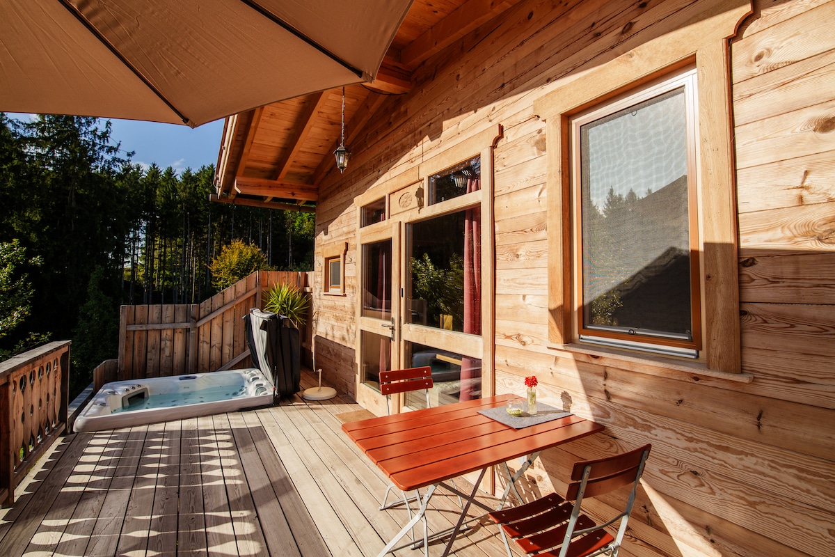 Nikmati alam semula jadi dengan segala deria. Anda akan menginap di cerun dan melihat padang rumput Galloways yang luas. Dalam cuaca cerah, anda akan nampak gunung-ganang Berchtesgaden Alps. Anda akan menginap di kabin kayu balak baharu di Almstil, dibina daripada kayu pain daripada hutan anda sendiri. Terus di teres anda akan menemui jakuzi dengan 38°C. Biarkan diri anda diurut atau nikmati ketenangan dengan pemandangan lembah. Anda boleh melihat bintang-bintang dan roti bakar untuk percutian anda dengan segelas prosecco.