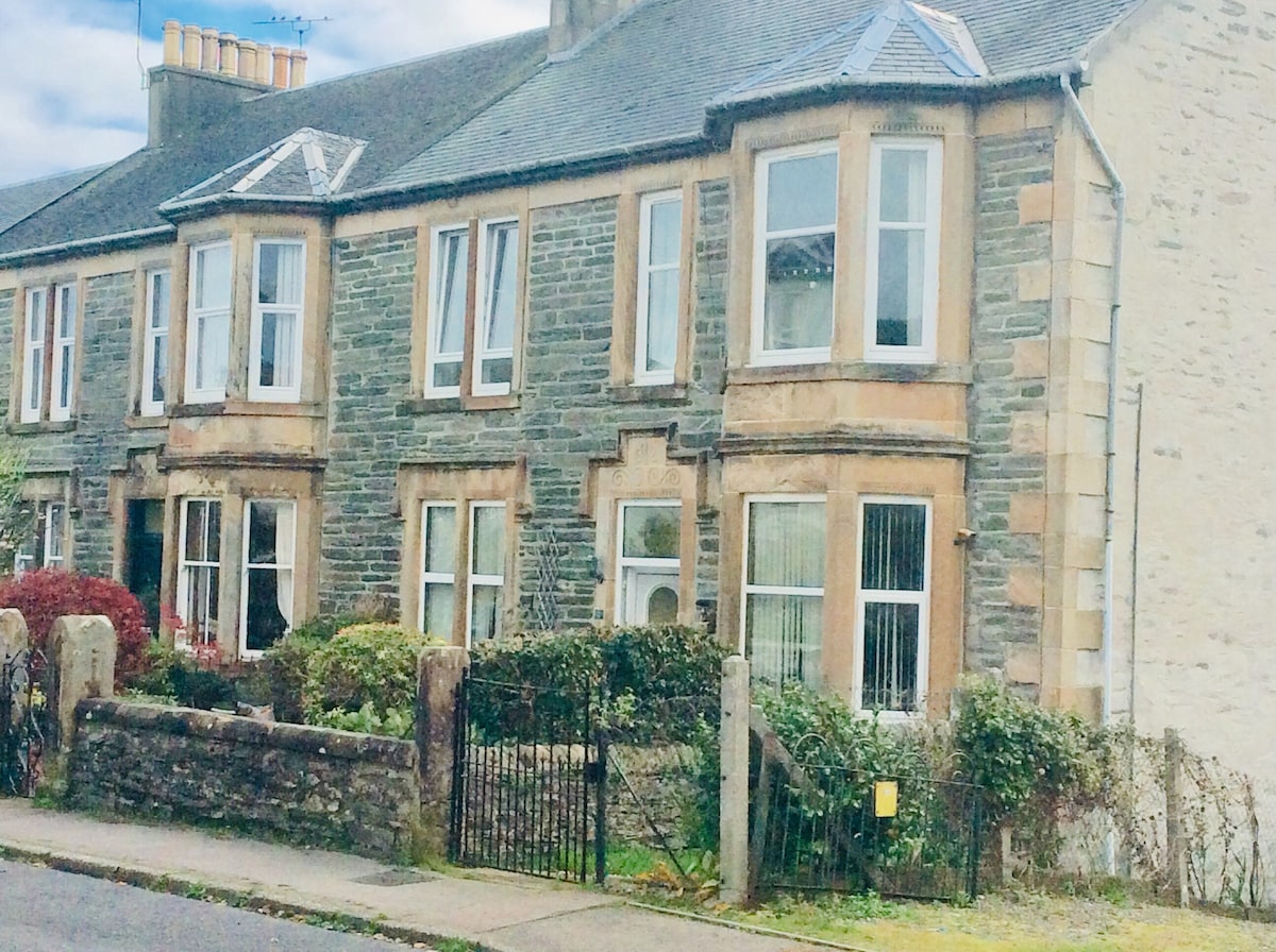 Rumah 5 bilik tidur Victoria tradisional yang diperbaharui kepada standard moden sambil mengekalkan ciri-ciri asalnya. Rumah yang luas sesuai untuk perjumpaan kumpulan besar atau kecil dan rehat keluarga yang santai. Taman persendirian besar yang tertutup dengan tab mandi air panas. Terletak di lokasi yang tenang dengan pemandangan laut yang menakjubkan di atas Firth of Clyde. Hanya 10 minit berjalan kaki dari pusat bandar dan kemudahan tempatan dengan terminal feri berhampiran. Anjing yang berkelakuan baik dialu-alukan. Sila lihat halaman media sosial kami untuk pelan lantai.