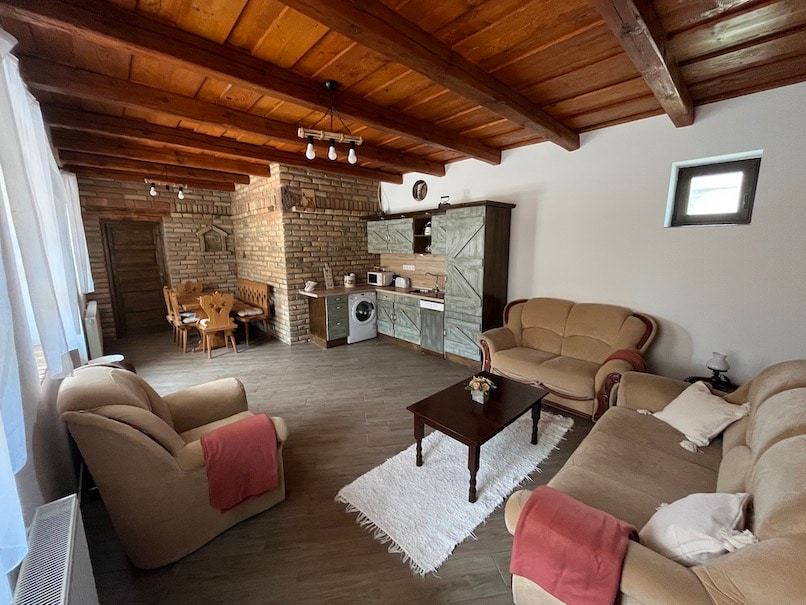Our renovated cottage located in the heart of Bakony Hills, surrounded by forests. 100 year old cottage totally renovated, refurnished on a rustic and cosy way. *Romantic bedroom with kingsize bed, direct entrance to the terrace and garden. *Living room with a huge sofa (also easily be turned to a kingsize double bed), well equiped kitchen. *Rustic design bathroom. *Huge garden, closed area for cars. *WIFI connection. *Unlimited coffee, tea, 1 bottle of local wine for welcome drink.