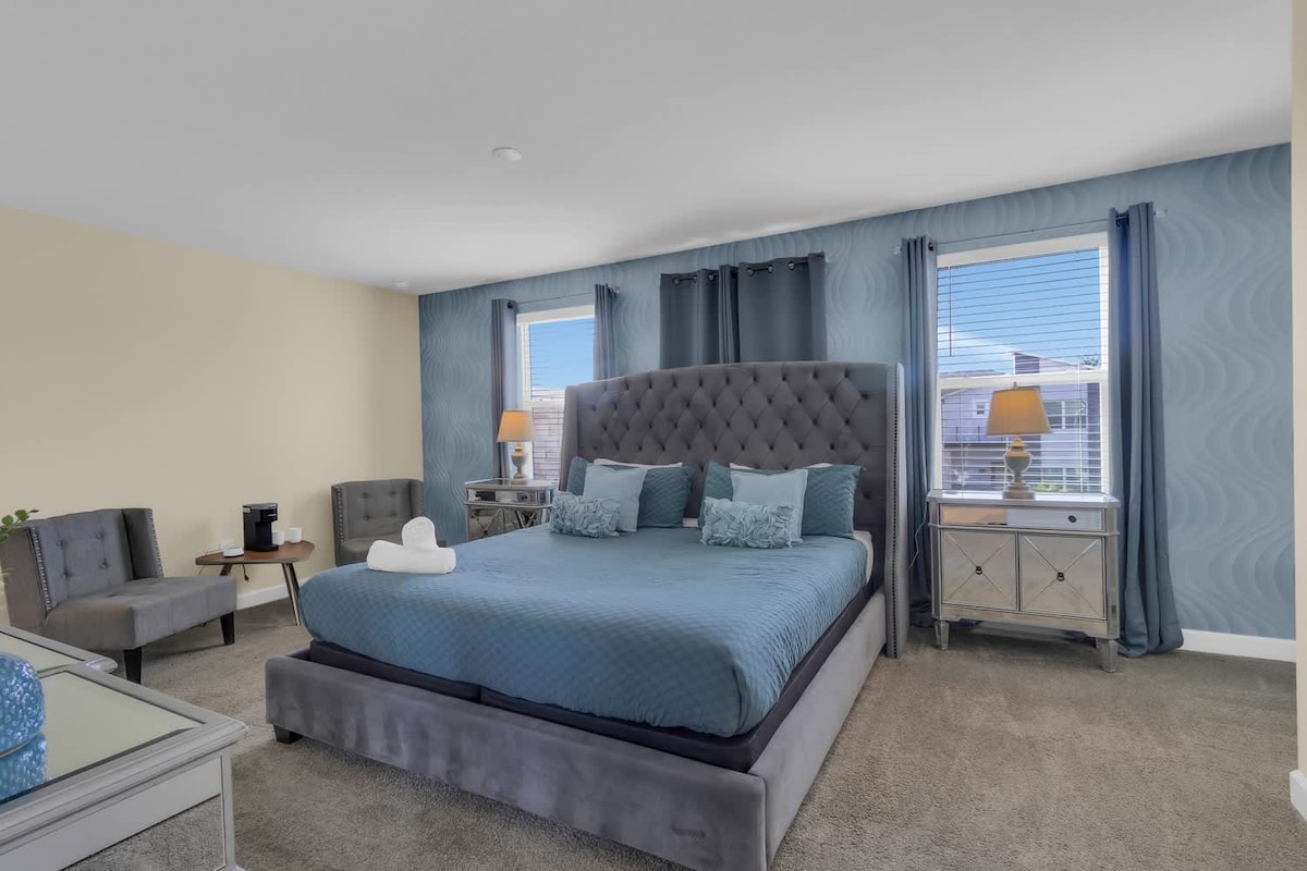 Vila Mewah 5BR/4.5BA di Windsor di Westside! Hanya beberapa minit dari Disney, Universal & Orlando. Kanak-kanak akan sukakan bilik bertema Mickey, Puteri dan Star Wars. Bersantai di kolam renang & spa panas persendirian anda atau nikmati faedah resort: sungai malas, taman air, arked & gimnasium. Dapur yang serba lengkap, Wi-Fi pantas, tempat letak kereta percuma dan berhampiran dengan tempat makan dan membeli-belah. Sesuai untuk keseronokan keluarga dan pengembaraan Florida!