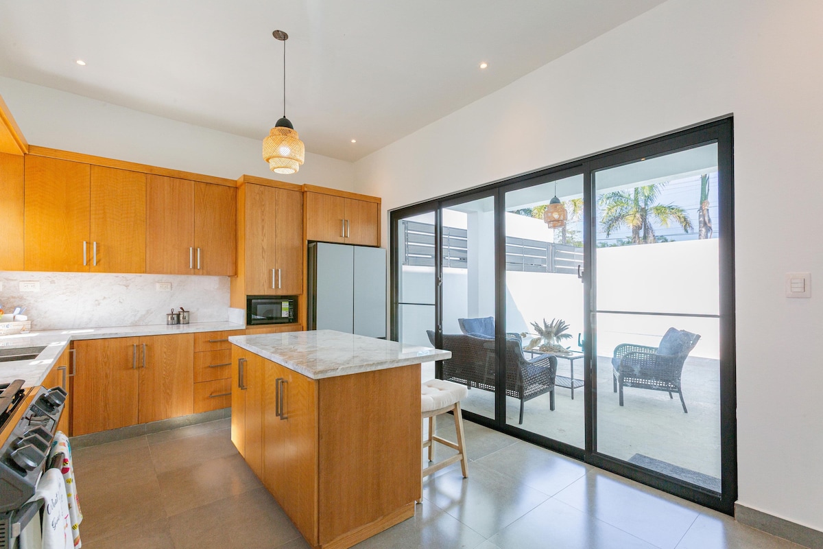 Vila mewah 3 bilik tidur yang moden, luas, dan berperabot baru, dalam komuniti berpagar yang dijaga, sesuai untuk pasangan atau keluarga. Hanya 15 minit berjalan kaki dari pantai. Dari teres dengan kawasan barbeku anda boleh menikmati pemandangan indah kolam renang dan lagun Cabarete. Semua bilik termasuk Aircond. dan TV. Dapur moden dan serba lengkap tidak meninggalkan apa-apa yang diingini. Wifi super pantas menjamin mereka sambungan internet yang selamat. ELEKTRIK adalah TAMBAHAN