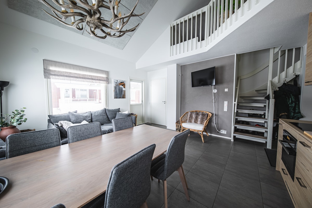 Apartmen hujung rumah teres yang seperti pondok dan lengkap adalah destinasi yang sangat baik untuk berkumpul bersama. Apartmen ini mempunyai lokasi yang strategik, jadi anda boleh sampai ke kedai, restoran, syarikat safari dan sewa peralatan dengan mudah dengan berjalan kaki. Bas lapangan terbang dan kereta api boleh membawa anda hampir ke jalan rumah. Hentian bas ski juga berdekatan. Apartmen ini sesuai untuk dua orang dan juga sesuai untuk kegunaan keluarga. Jika mahu, set cadar dan tuala boleh ditempah secara berasingan pada harga 20 e / orang / tempahan.