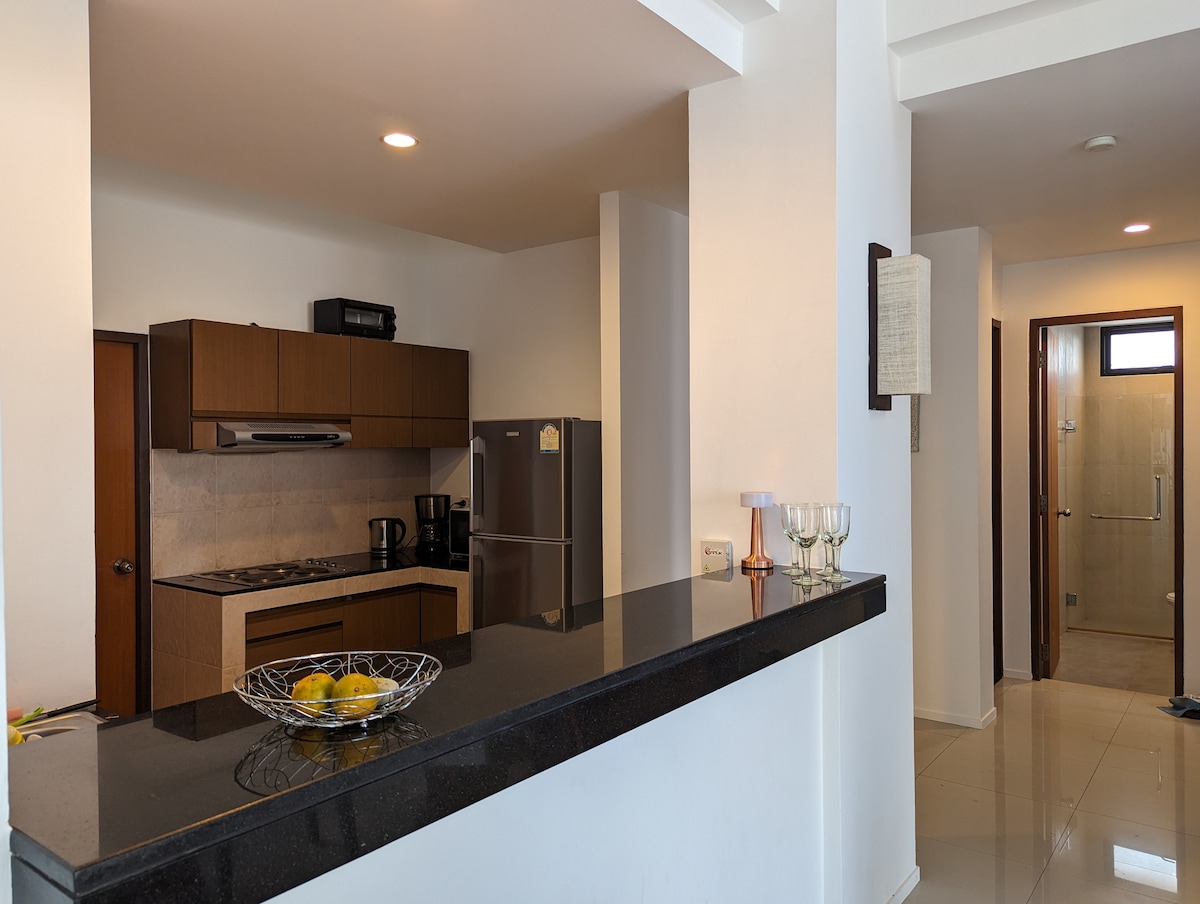 Apartmen hadapan pantai 3 bilik tidur kami yang berangin boleh menampung seramai enam orang dengan selesa. Ia berhawa dingin sepenuhnya dan mempunyai pemandangan taman dan lautan yang subur. Nikmati katering sendiri, atau berjalan ke restoran berdekatan untuk makanan Thai, fusion atau antarabangsa.