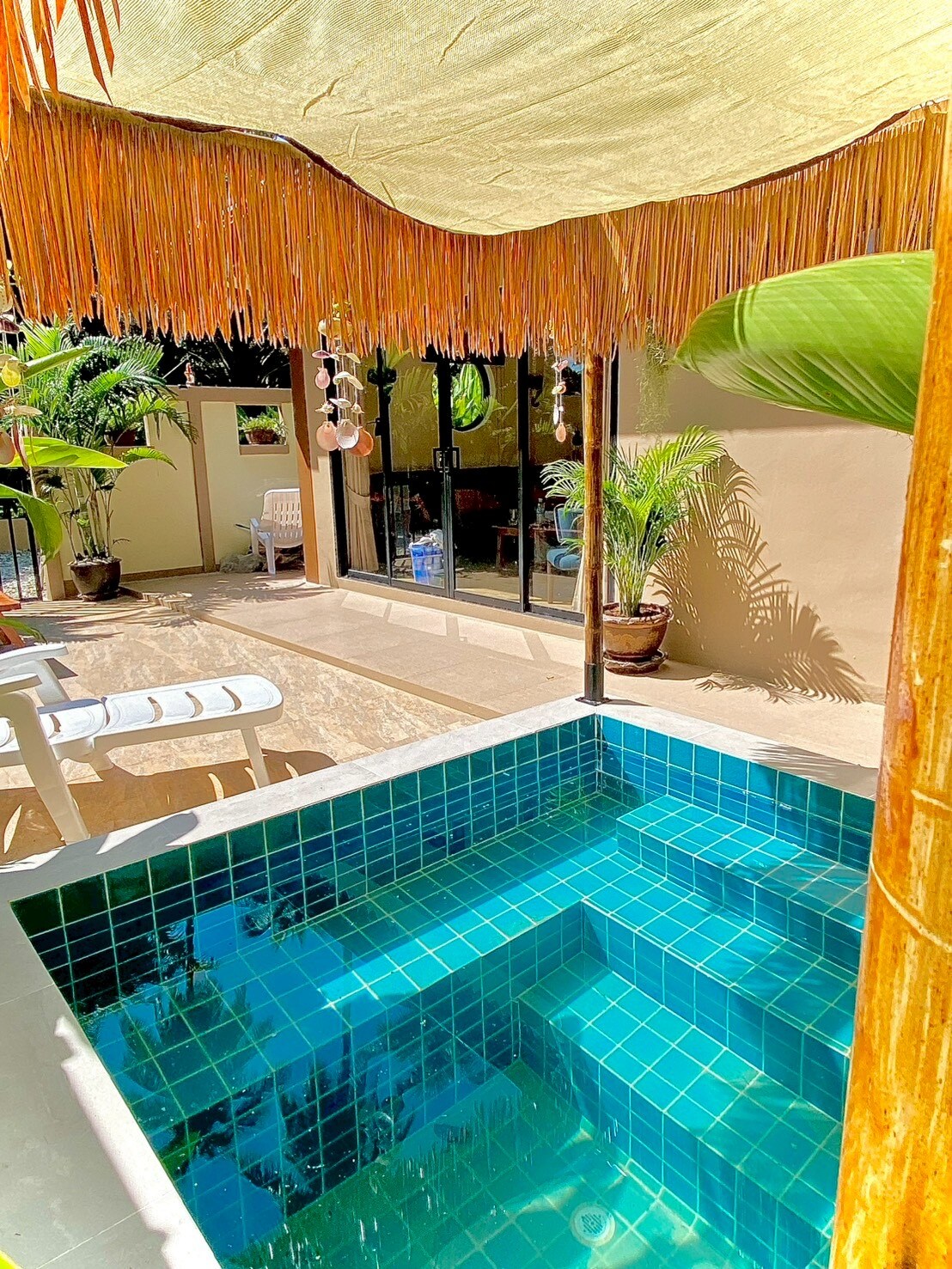 Sesuai untuk percutian keluarga! Vila moden, 2 bilik tidur, 2 bilik mandi dengan dapur kecil, penyaman udara di kedua-dua bilik tidur & ruang tamu. Vila yang cantik ini boleh menampung 2 - 6 orang dewasa dan kanak-kanak. Katil tambahan memerlukan notis awal. Harga termasuk 4 orang dewasa dan 1-2 kanak-kanak. *** Tetamu tambahan dikenakan 300 baht semalam. Nikmati pemandangan kolam renang dan taman yang subur. Penginapan ini juga menyediakan penggunaan meja snooker/pool, dapur luar yang besar, dan pemanggang barbeku. 5 Minit dengan kereta ke pantai!