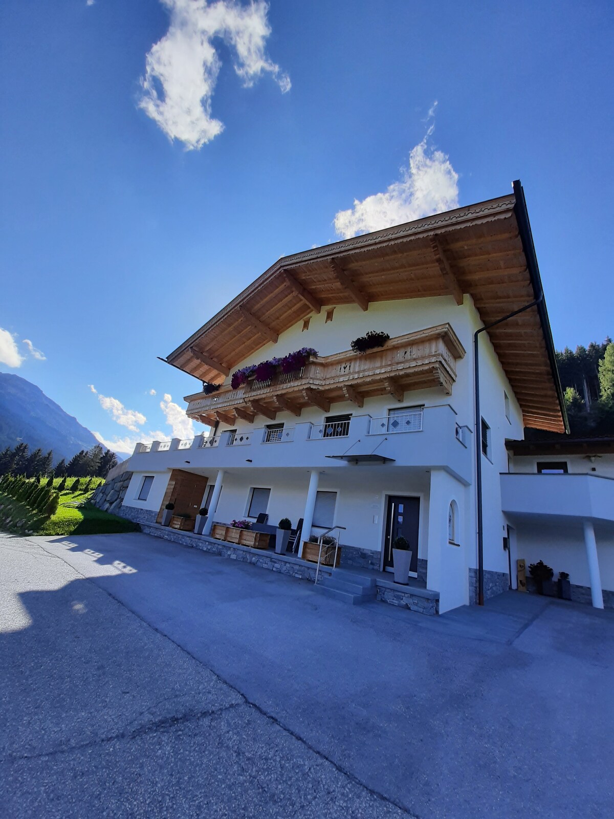 Apartmen ini terletak di dataran tinggi kecil pada 1098 meter di sebelah Zillertal yang cerah. Pemandangan indah Zillertal. Seluruh rumah baru dibina pada tahun 2010. Lokasi yang tenang, ladang dengan kambing, alpaka, taman permainan, banyak laluan mendaki, berbasikal atau hanya menikmati pemandangan yang indah. Pada musim sejuk, pinggan meluncur, toboggan, pergi lawatan, hiking snowshoe. Kami mempunyai lebih 50 koloni lebah di tanah kami, serta banyak produk penternakan lebah dengan rasa.