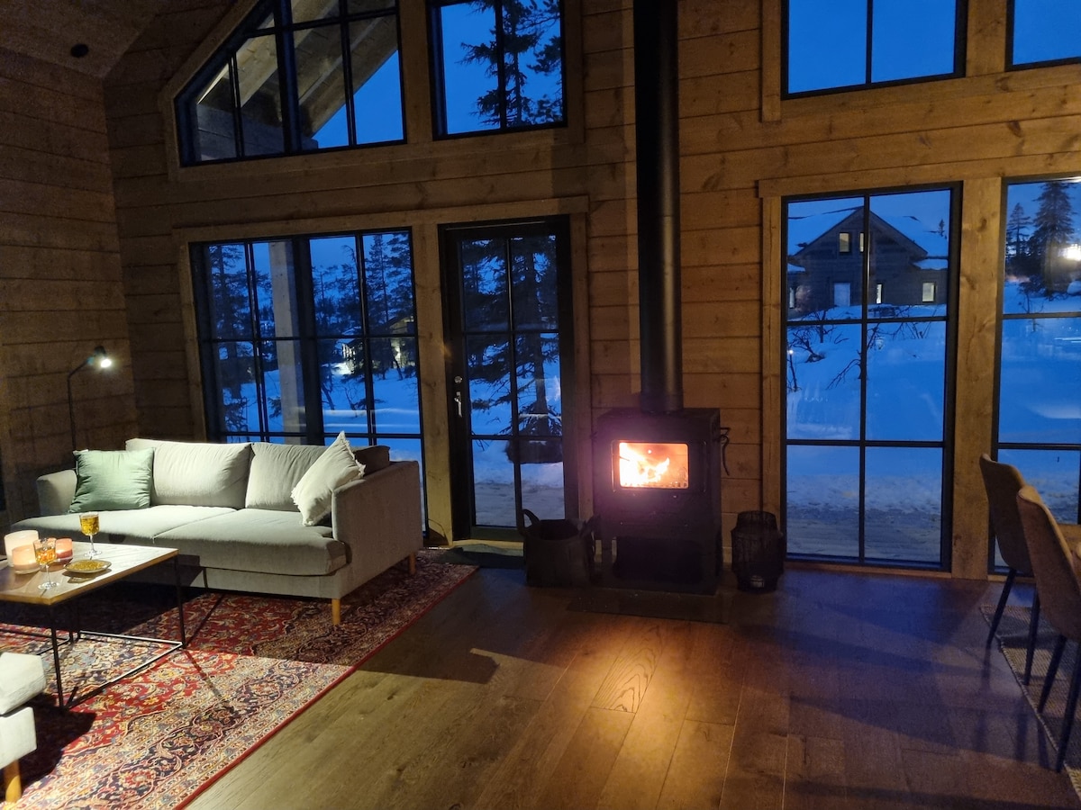 Lyxig och nybyggd fjällstuga nära backarna